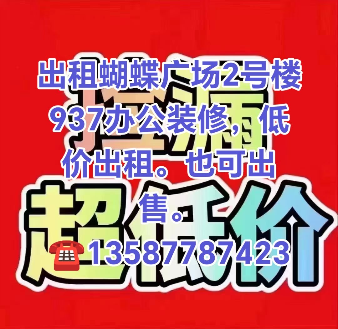 出租蝴蝶广场2号楼937办公装修,低价出租。也可出售。