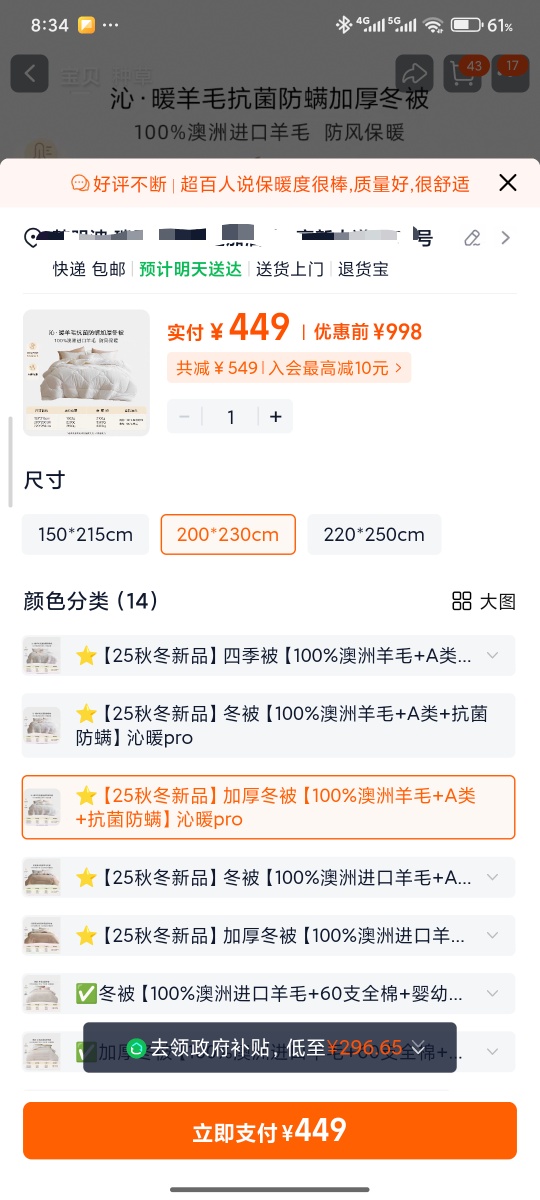 亲戚送的,淘宝搜了一下400多,270卖了,纯羊毛的正品,他说店里买的1000多,家里太多了用不上,