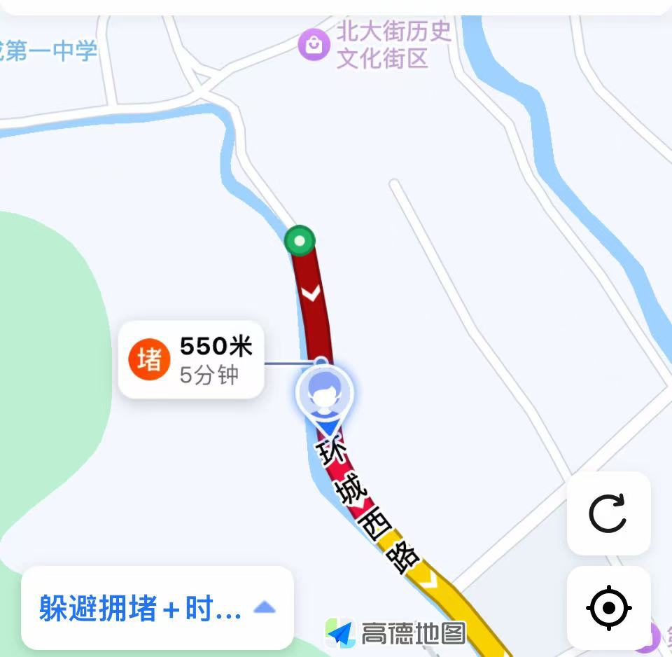 可以设置单行道,环城西路以南到北单行,环城东路从北到南单行。