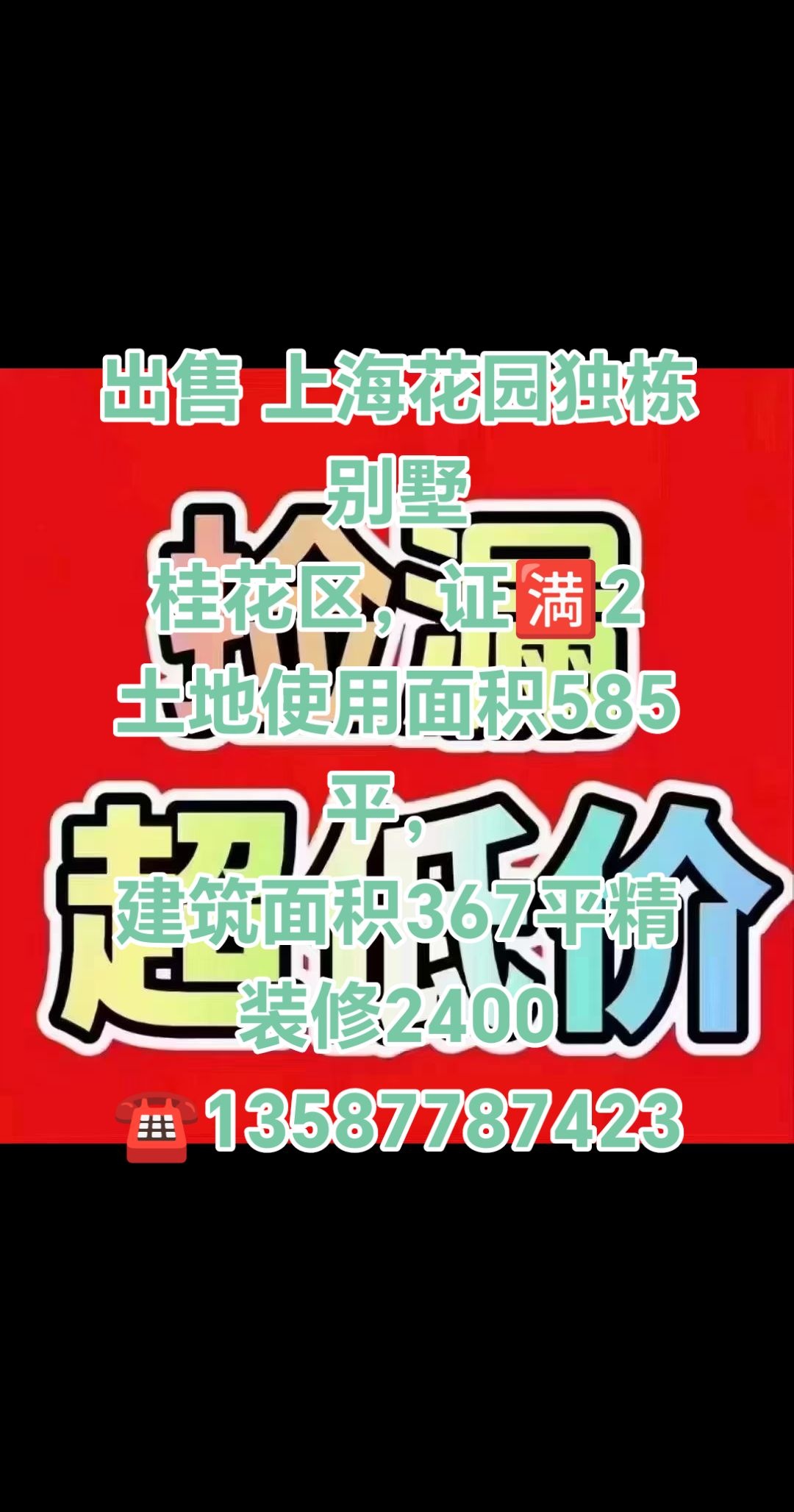 出售 上海花园独栋别墅 桂花区,证2 土地使用面积585平, 建筑面积367