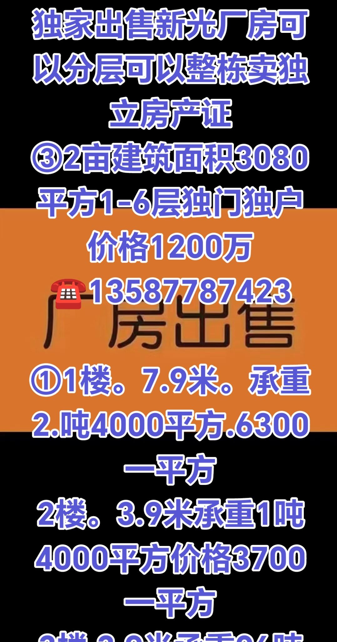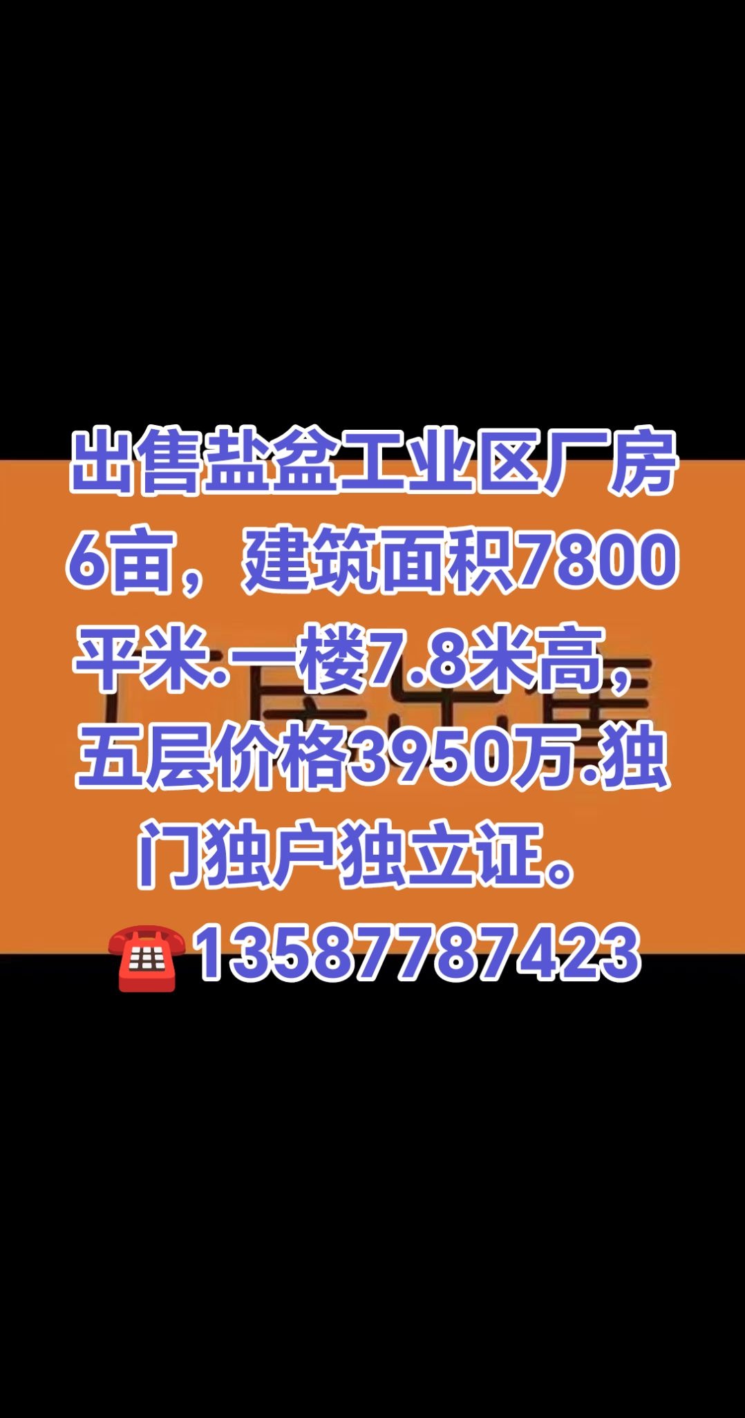 出售盐盆工业区厂房7亩,11500平二栋6层。独门独户独立证。13587787423