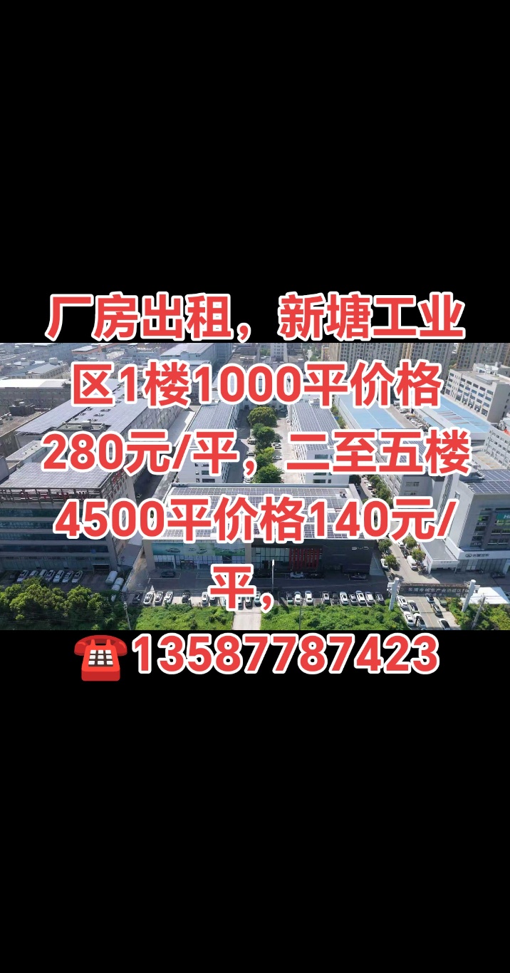 厂房出租,新塘工业区1楼1000平价格280元/平,二至五楼4500平价格140元/平,13587787423