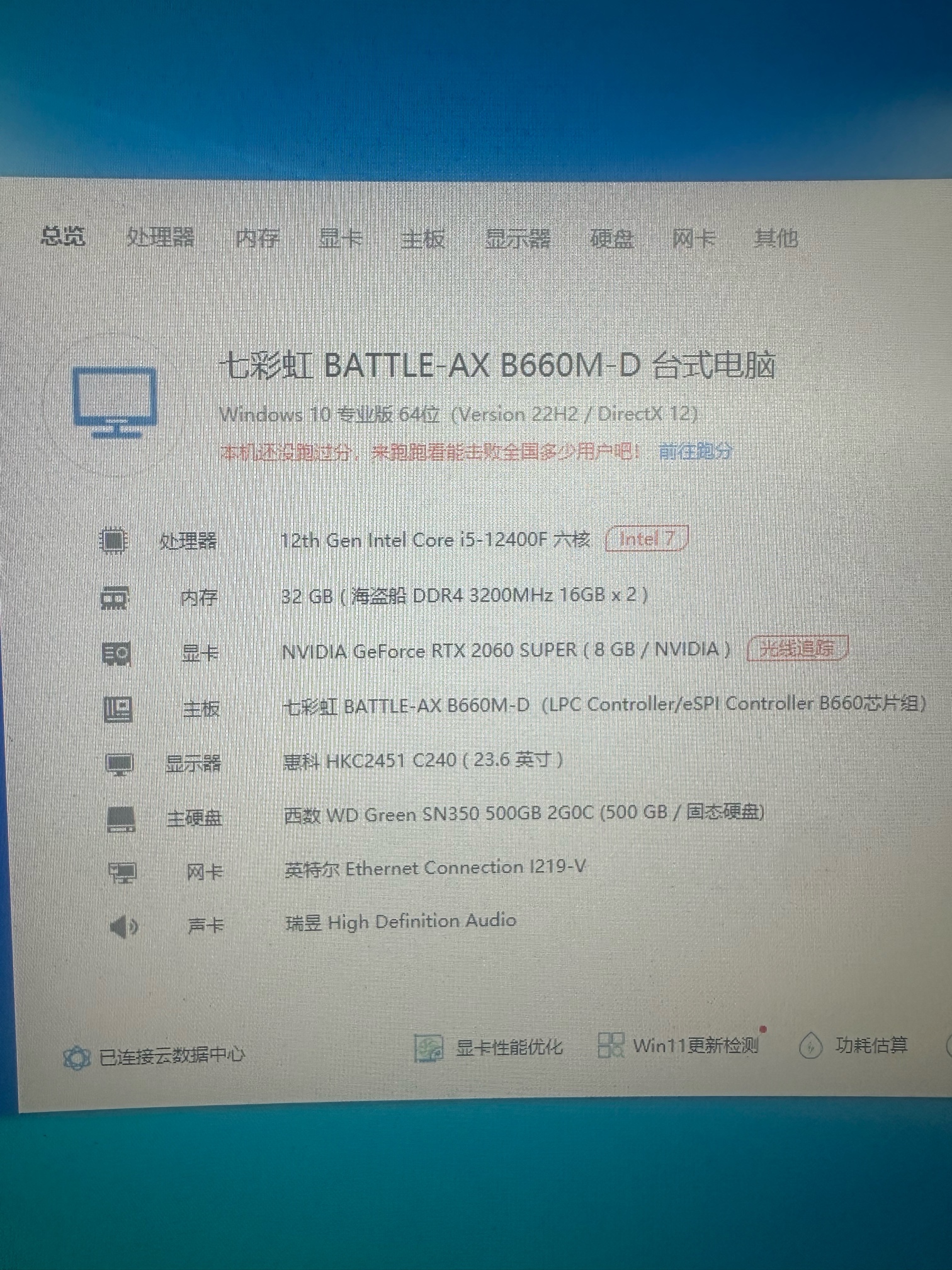 出一台二手主机:i5-12400F32G内存500G固态rtx2060S-8G