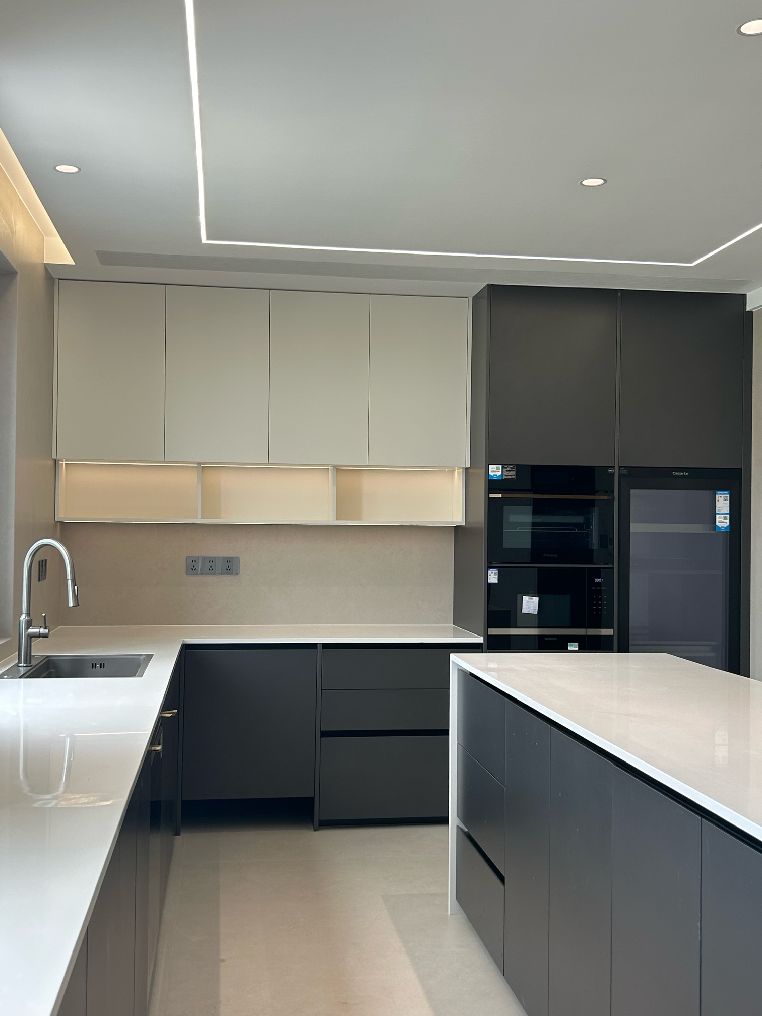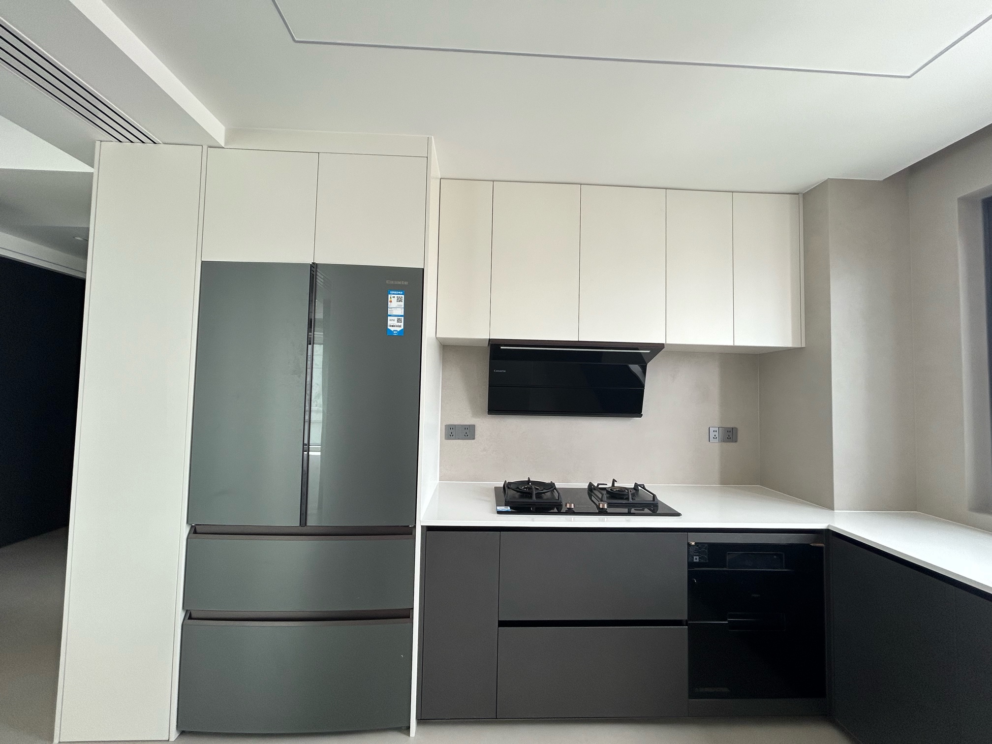 280平方套房大厨房,金属烤漆厨柜落地效果