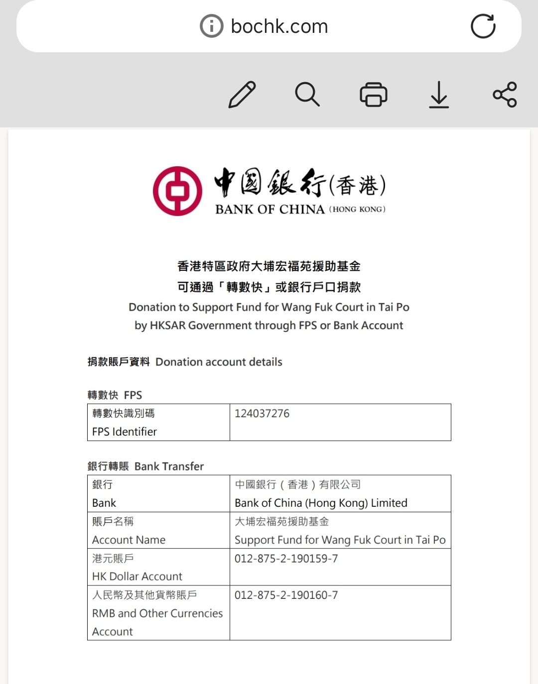 以下为“中国银行香港”官方网站,对此捐款账号的声明