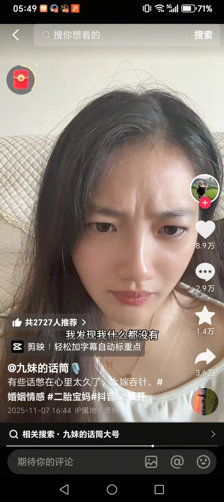 女人,本来就是一块行走的肉,全社会都想吃。尤其年轻女人,那更香喷喷的。社会本来就是弱肉强食,真正常。首先,一个女的跑男方家里对着男方家这么多人,即使自己对的也会在对方眼里是错的。因为关键原因是你跑人家地盘呼吸 。你要是没被对方利用的价值,对方干嘛找你呢。所以被伤害被利用就很正常啊。绝大部分底层的男女都想利用对方是非常正常的,所以被欺负被吃肉被算计都很正常。人家男方挣不了钱就会怪你克夫,挣得了钱也是男方自己有本事跟女人无关。当前这个女人被吸干了,男人就想换下一个女人,在男人角度看,很正常啊。哎呀,女人三十多岁后,这些浮云算得了什么。抛开吧,看看风景吃吃美食对自己好也是真正的善待自己。人活匆匆几十年大家都只剩一半光阴了,断臂求生才是最重要的。其它的人与事,都是浮云,虚幻。很多女人婚姻产生了痛苦是因为,她们自己要接触婚姻,不接触不就好了。反正女的又不需要给自己娘家传宗接代,都没基础保障自己了那又何必要生娃让对方利用呢。事业会给女人回报,养生善待自己会给女人回报,美食美景会给女人回报,对自己好的都会给自己回报的,利他的都是浮云而过。二十多岁的女人可能还沉浸在伤痛里不停的回想伤痛反复通过回想不断伤害自己,何必呢。女人三十岁后人学会尽量把珍贵的时间放自己养生上,有时间,看看风景看看美好的事物看看卡里余额不就又开心了么。真正活是对自己好,而不是把自己的肉给别人吃。