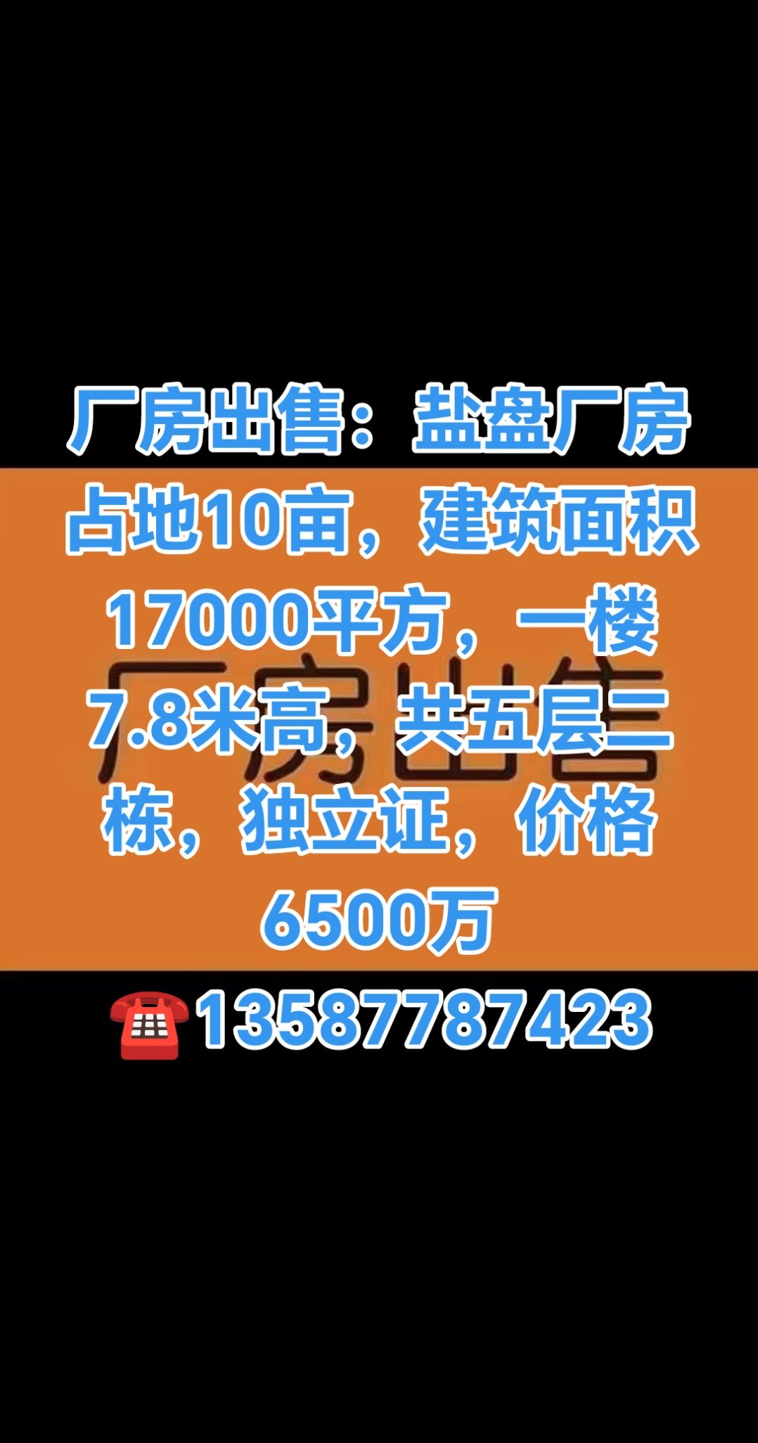 出售/翁垟工业区/土地5.8亩/建筑7000平/证件齐全/独门独院/正常交易/售价2800万/联系电话13587787423