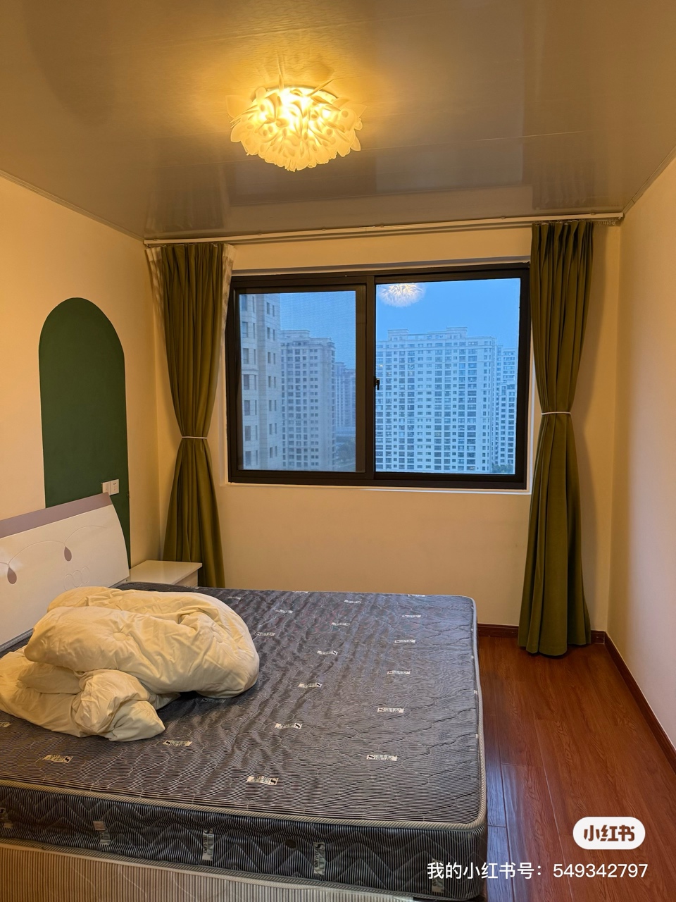 房子是精装的,直接拎包入住,配有空调、冰箱、洗衣机,床也配好了,窗帘窗帘都给你配齐了!