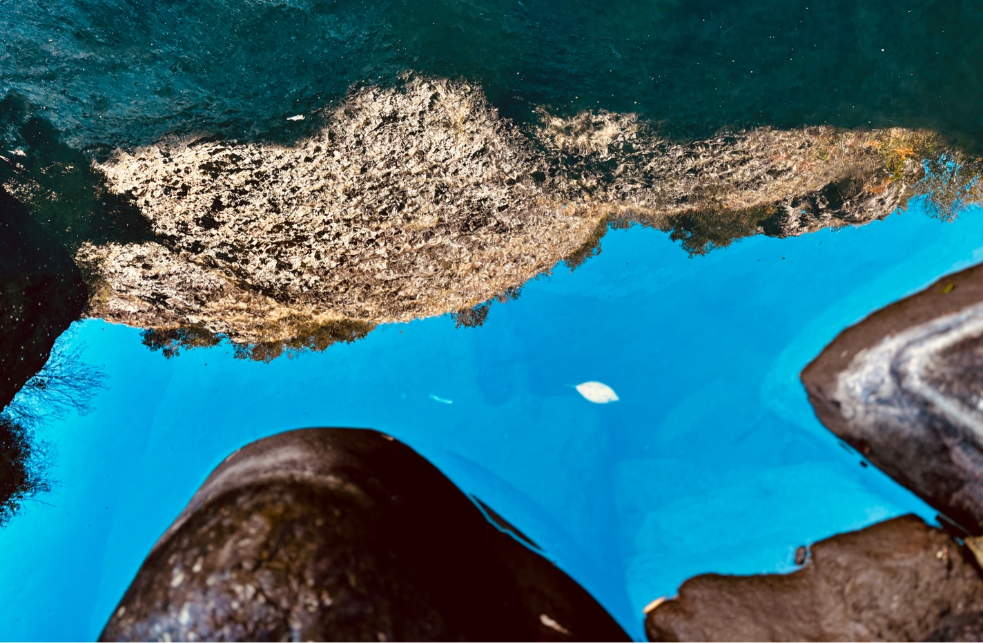流水化作平静温柔而清澈的镜子,映照着缤纷的自然。