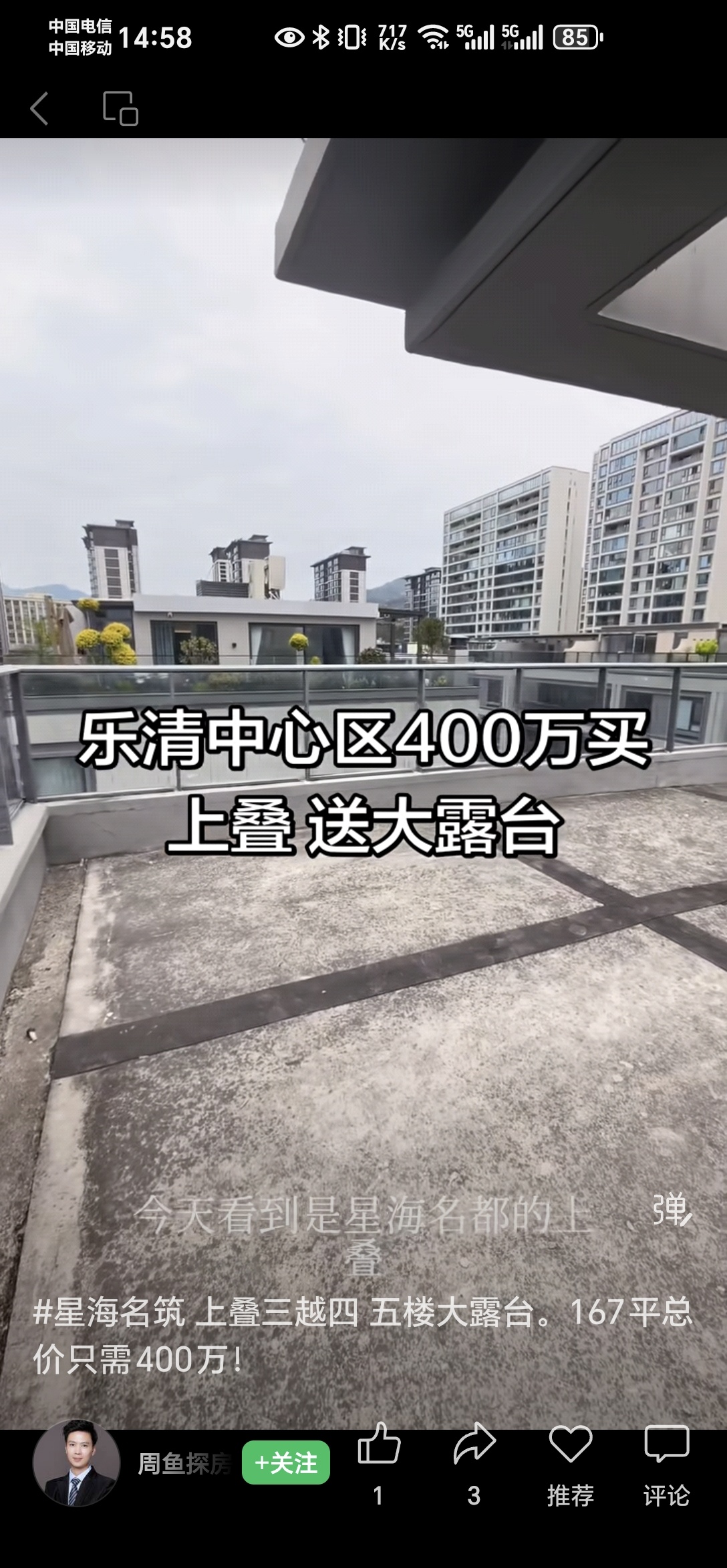 #星海名筑业主自砍一刀 上叠 西边套 采光足 带大露台 167.65