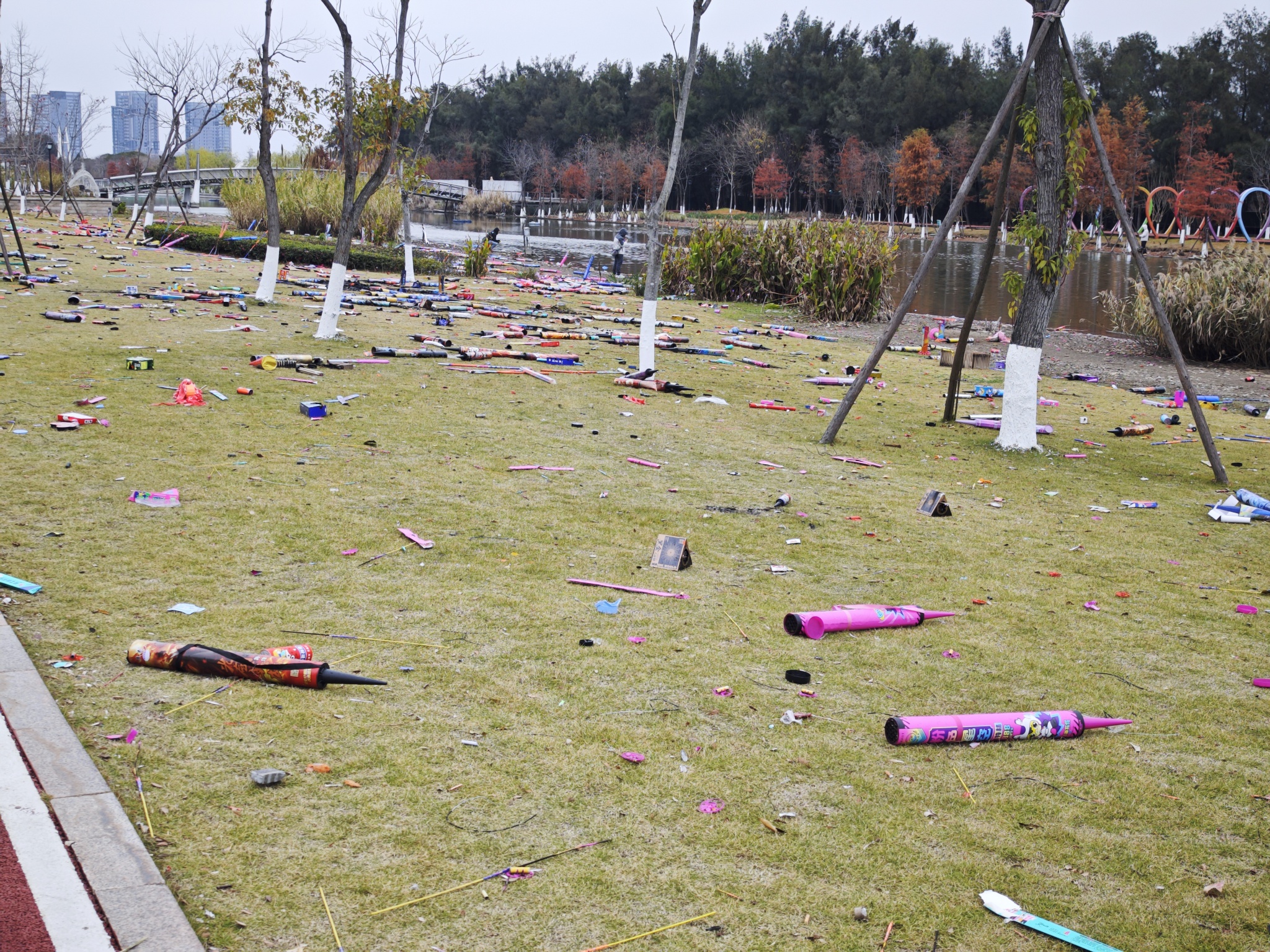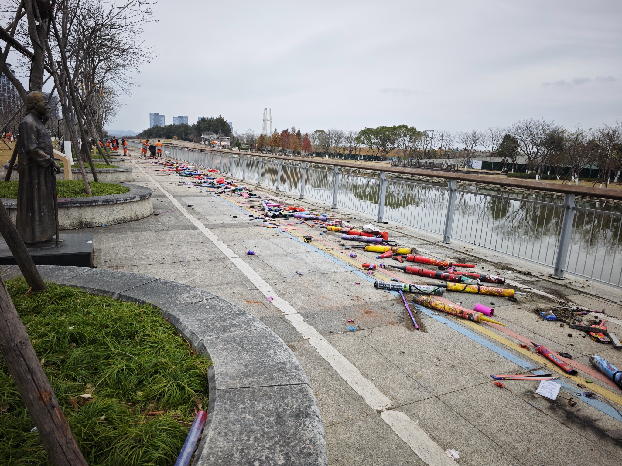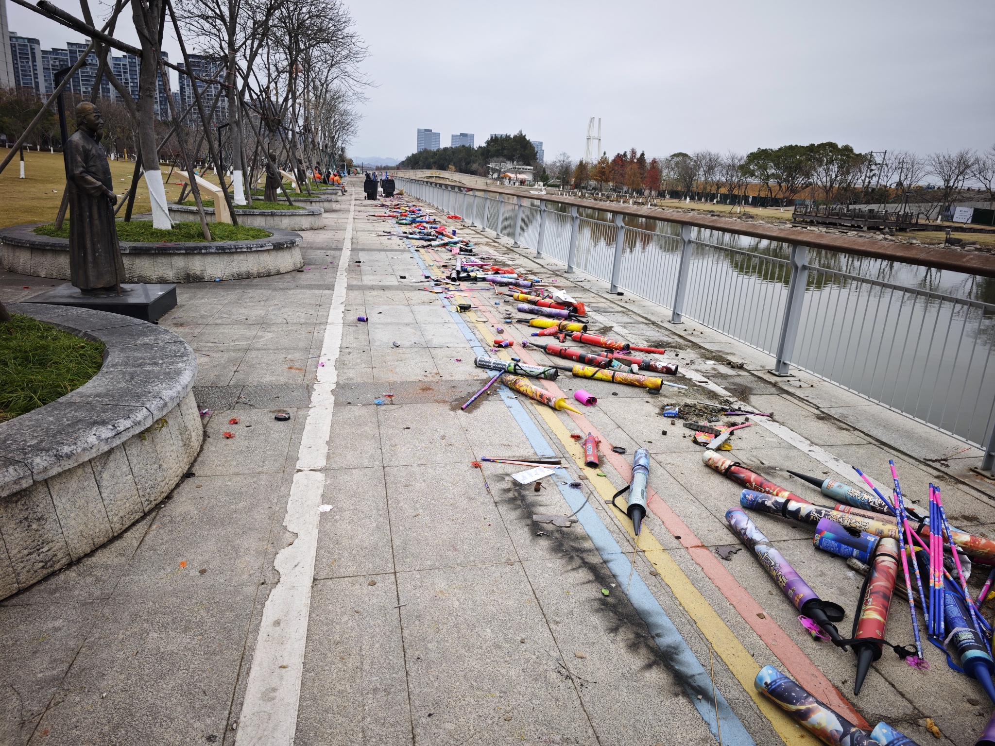 跨年烟花狂欢后的滨海公园