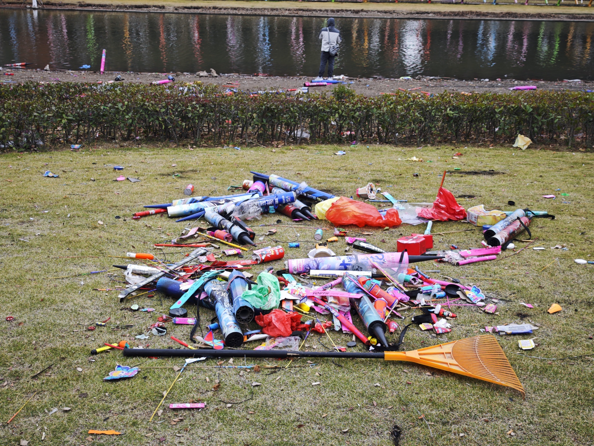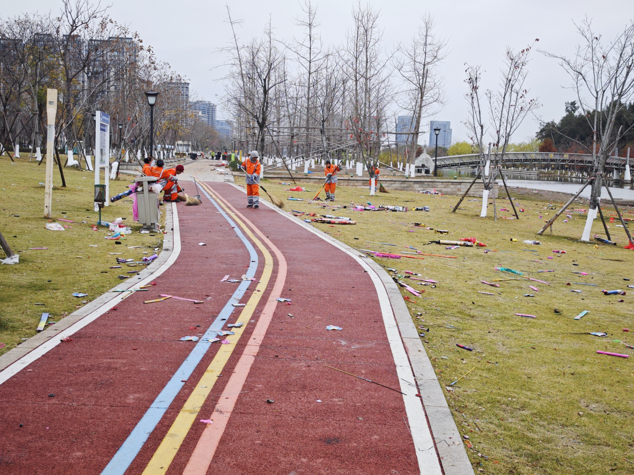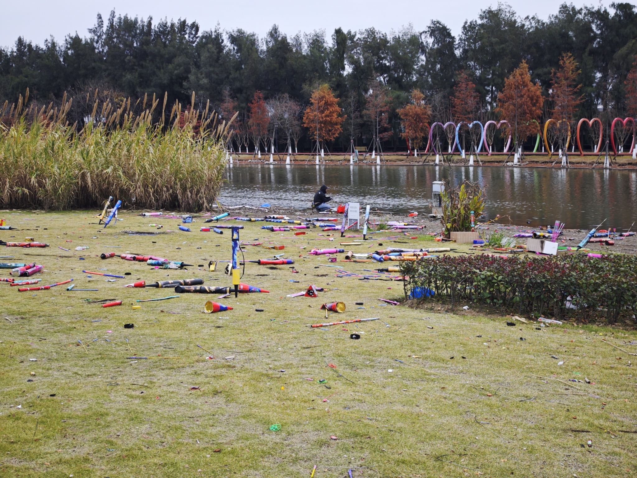 跨年烟花狂欢后的滨海公园