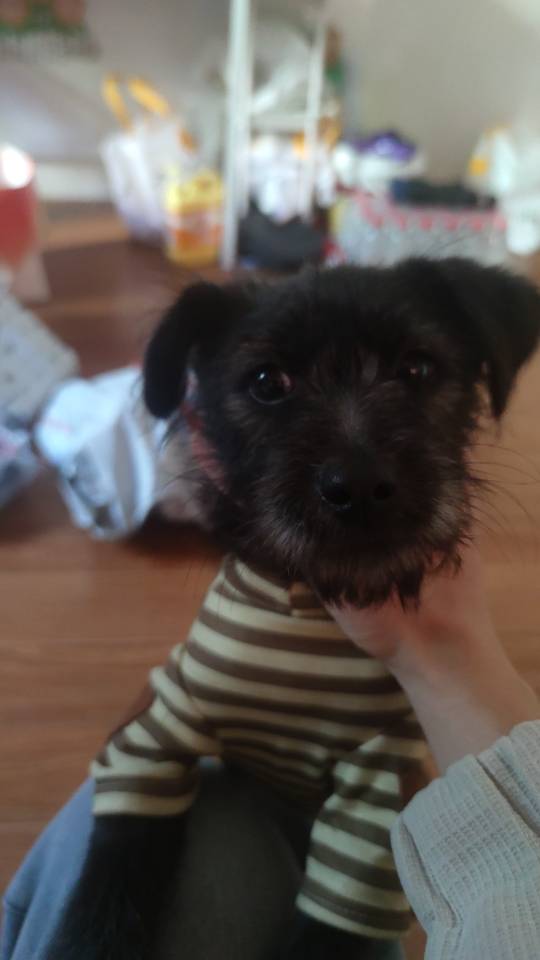 这只小狗也是别人捡到的然后我看可怜就收留它了现在房东回来了看到不同意养