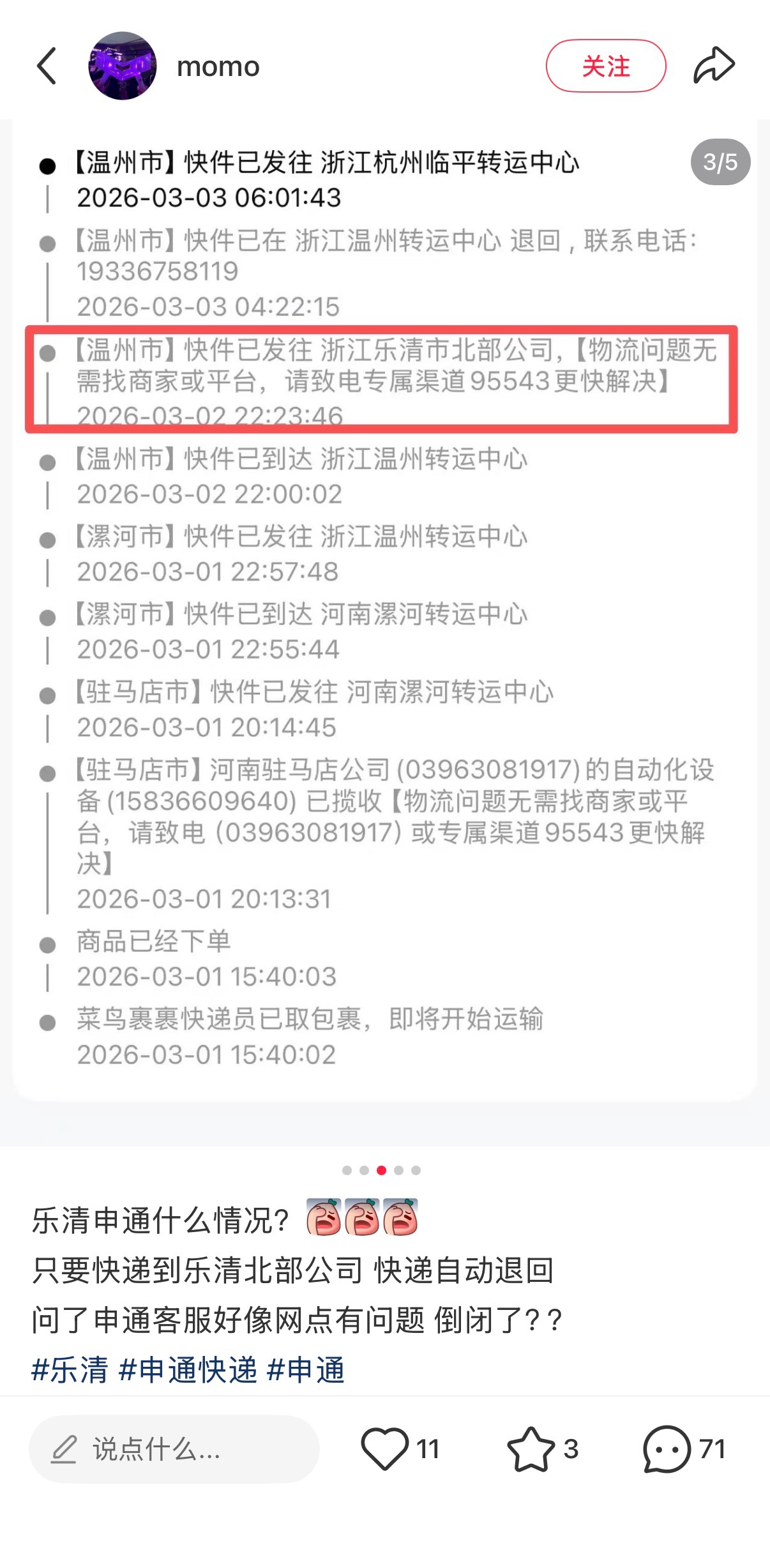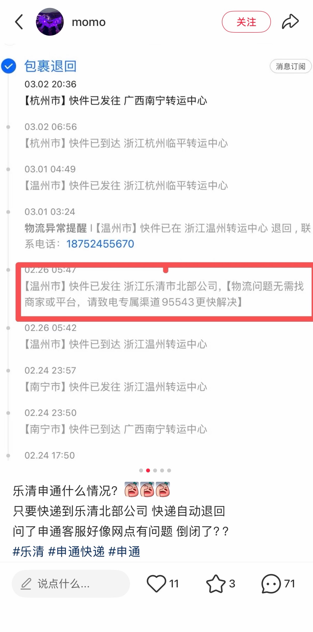 乐清的申通快递怎么了?