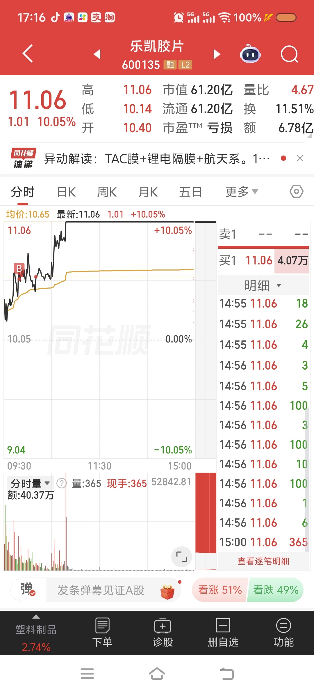 我就说没走完,涨停了