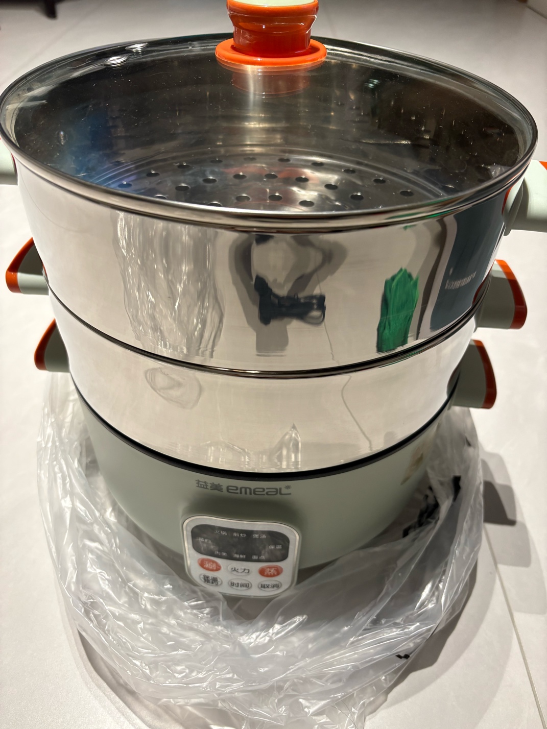 出全新电蒸锅、脚踩拖把