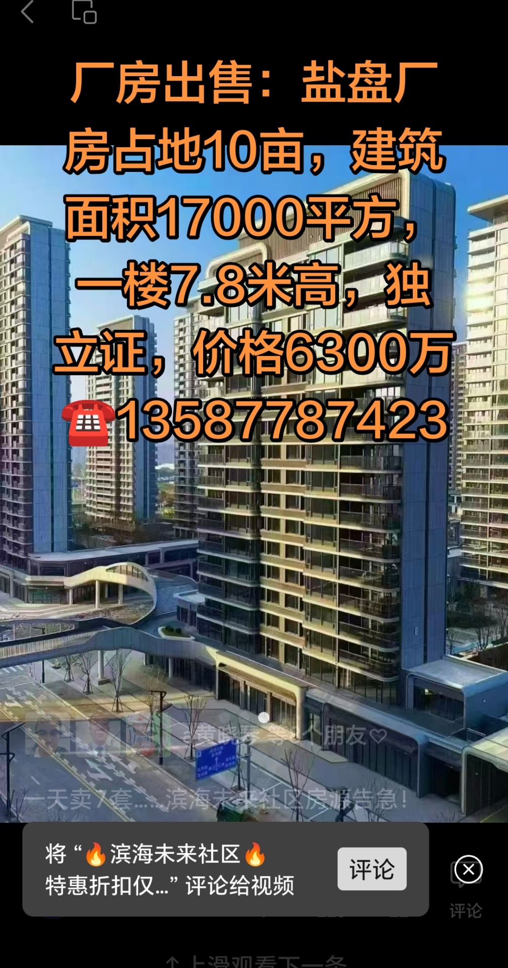厂房出售:盐盘厂房占地10亩,建筑面积17000平方,一楼7.8米高,独立证,价格6300万