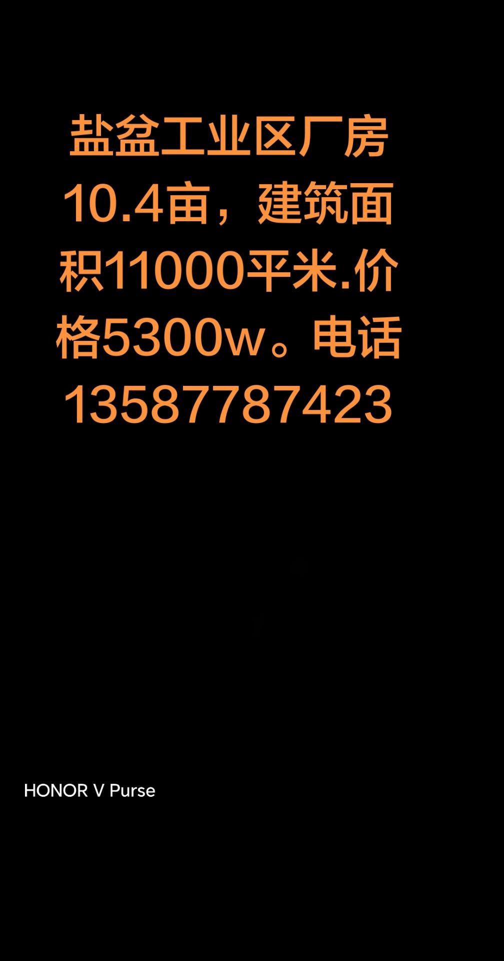 盐盆工业区厂房10.4亩,建筑面积11000平米.价格5300w。电话13587