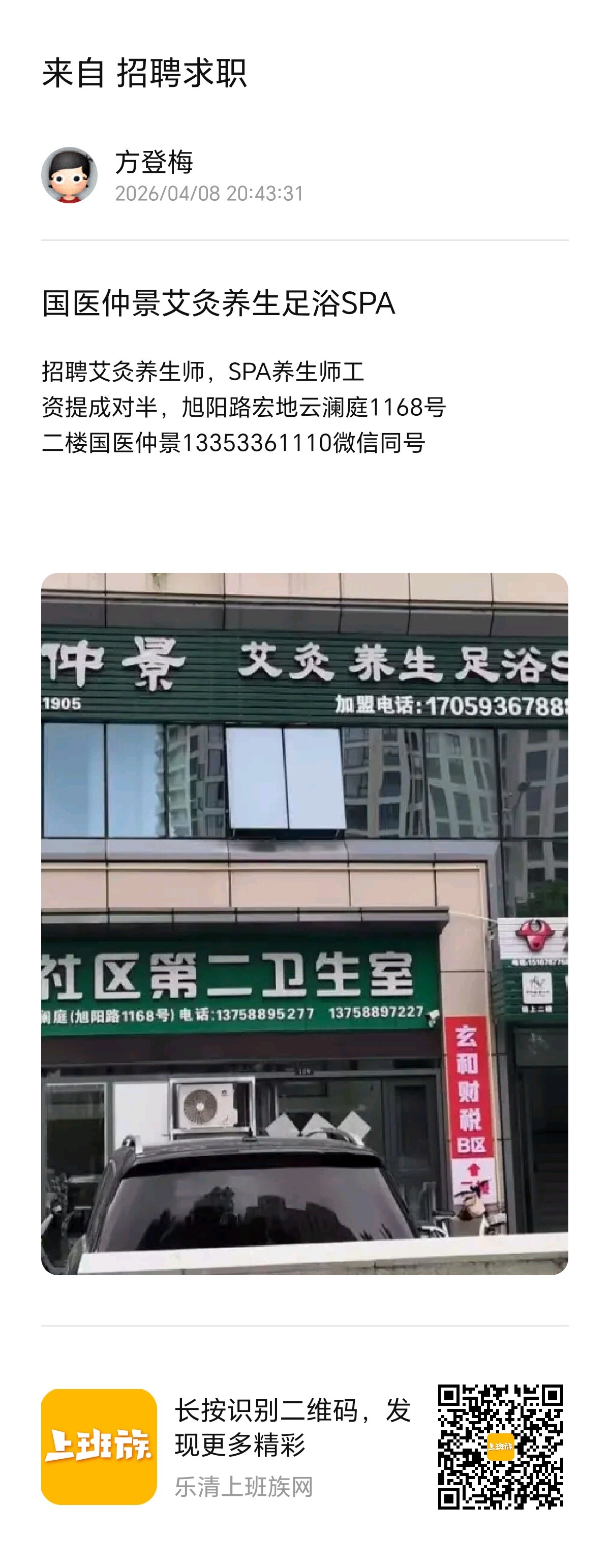 方登梅 04-09 招聘艾灸养生师,SPA养生师