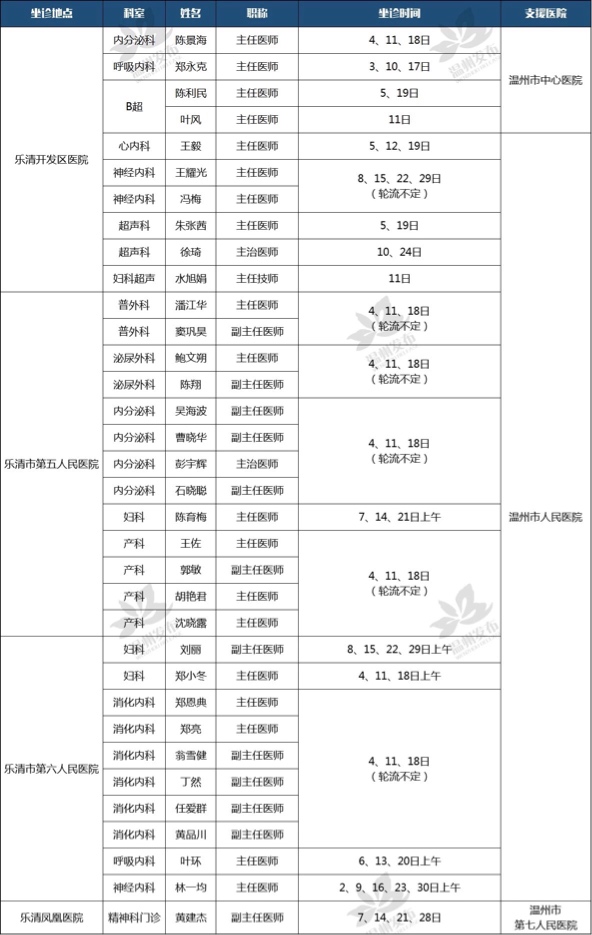 1月份,乐清多家医院有温州专家大咖来坐诊,排班表收好→
