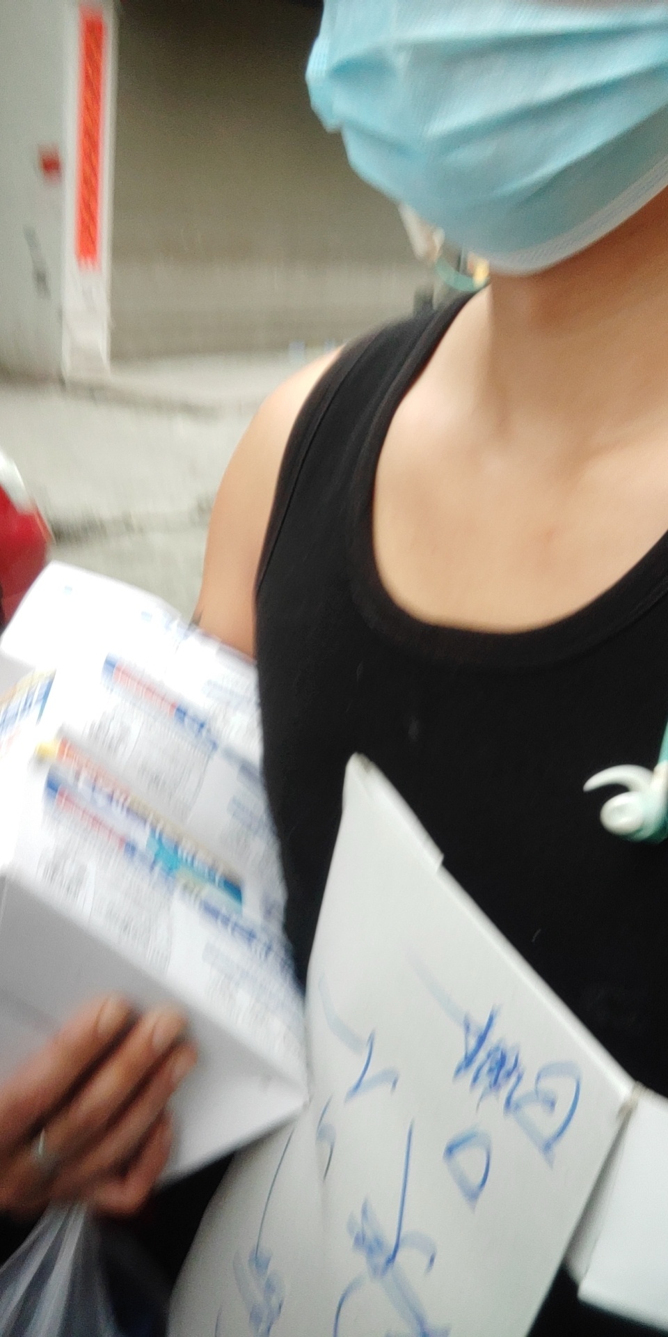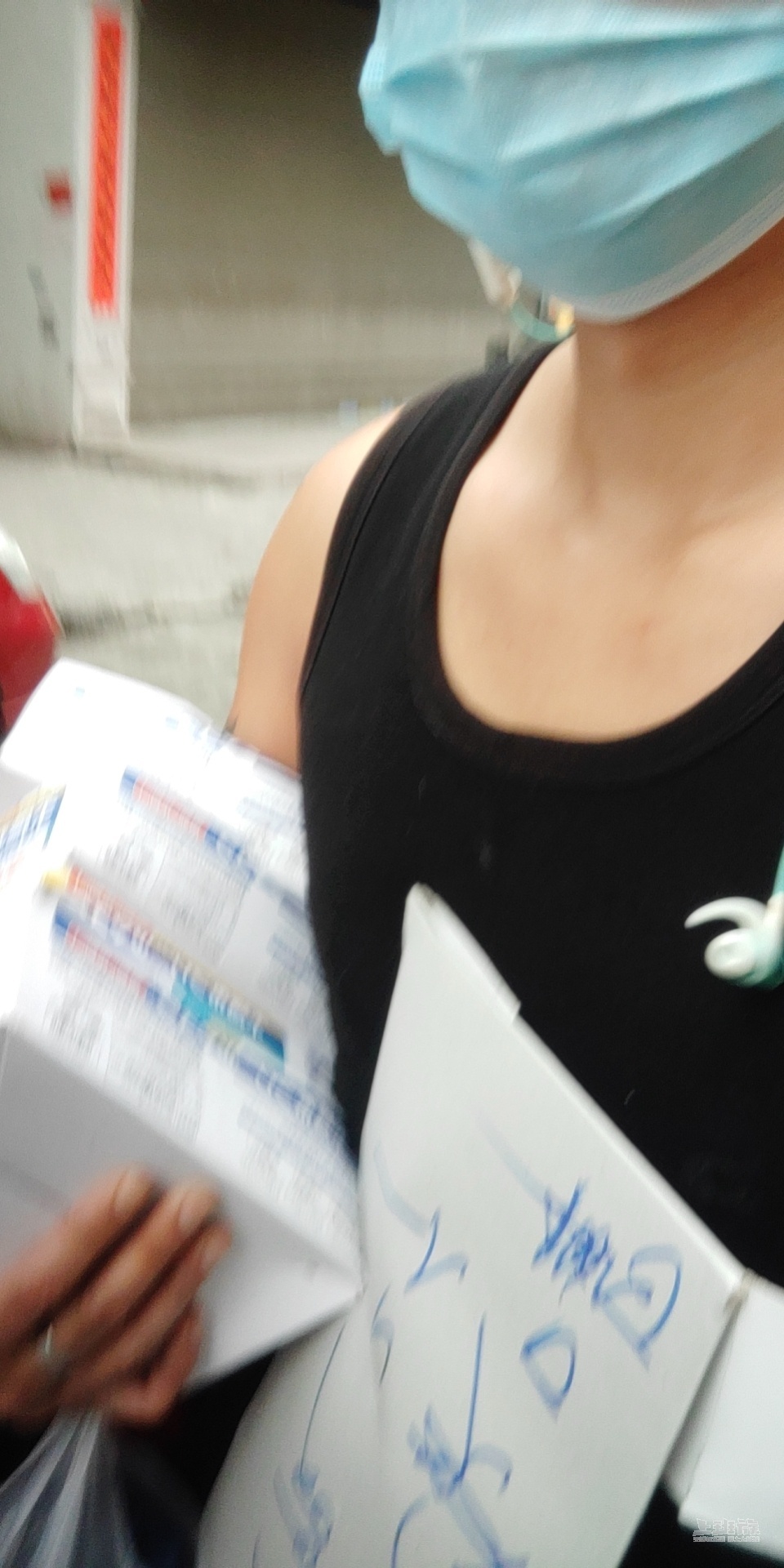那天在柳市包宅我老公看到了,说一个穿着背心的男生在发口罩