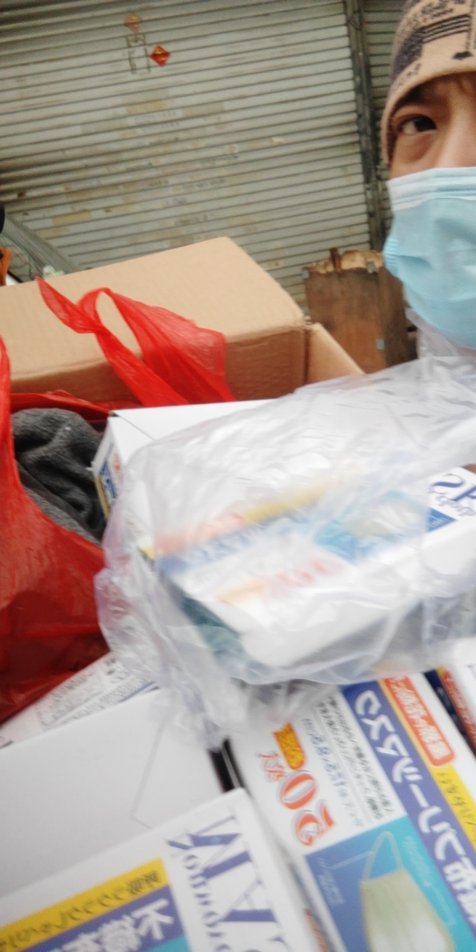 那天回到家,看到你在微信群里说早上送包宅,当时我在菜场里面没看到,没发到口罩