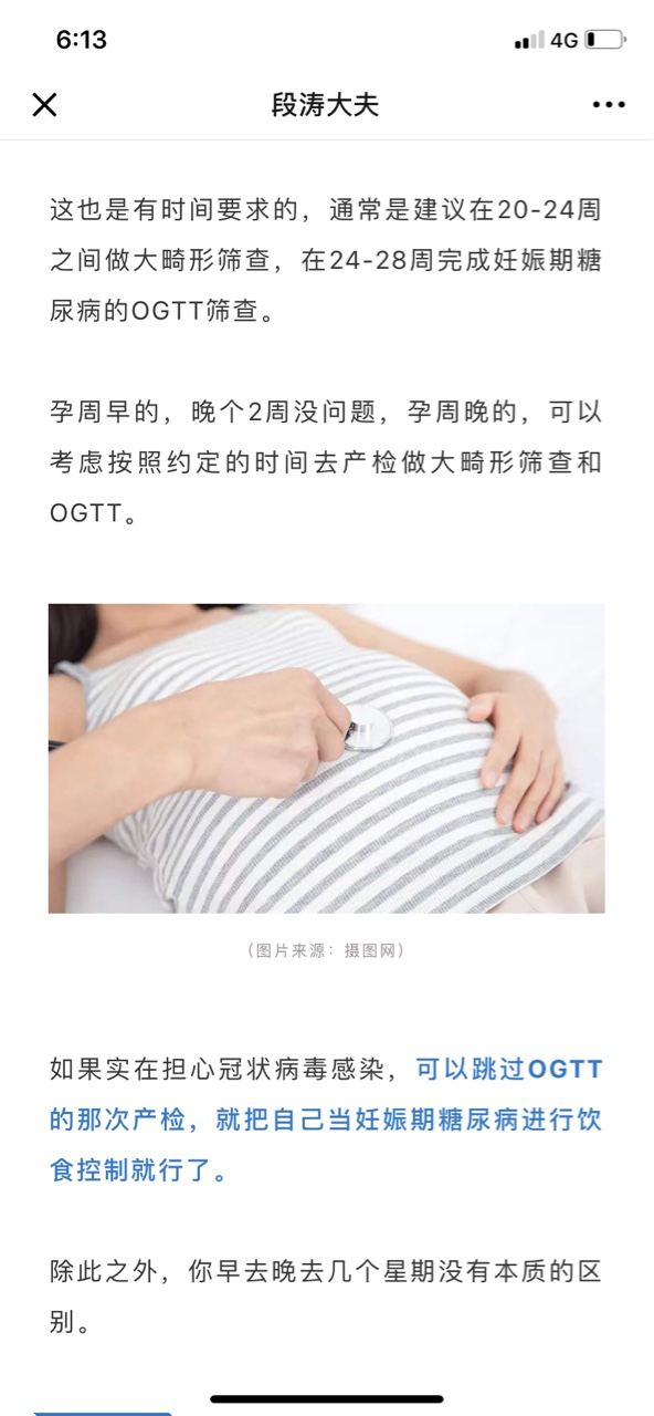 糖耐算孕期比较重要的检查,上图段涛医生是上海一妇婴产科主任医生,他是说如果实在害怕就直接把自己当妊娠期糖尿病病人来控制饮食。要么你打医院电话问问,把自己个人情况跟医生说一下看医生怎么建议。我原定下周的产检,我也有点不敢去医院,早上打医院热线咨询过了,医生是说我这个孕周是蛮重要的一次产检要看下胎位是否正,但是我自己不介意后期生产方式的话也可以推迟两周。
