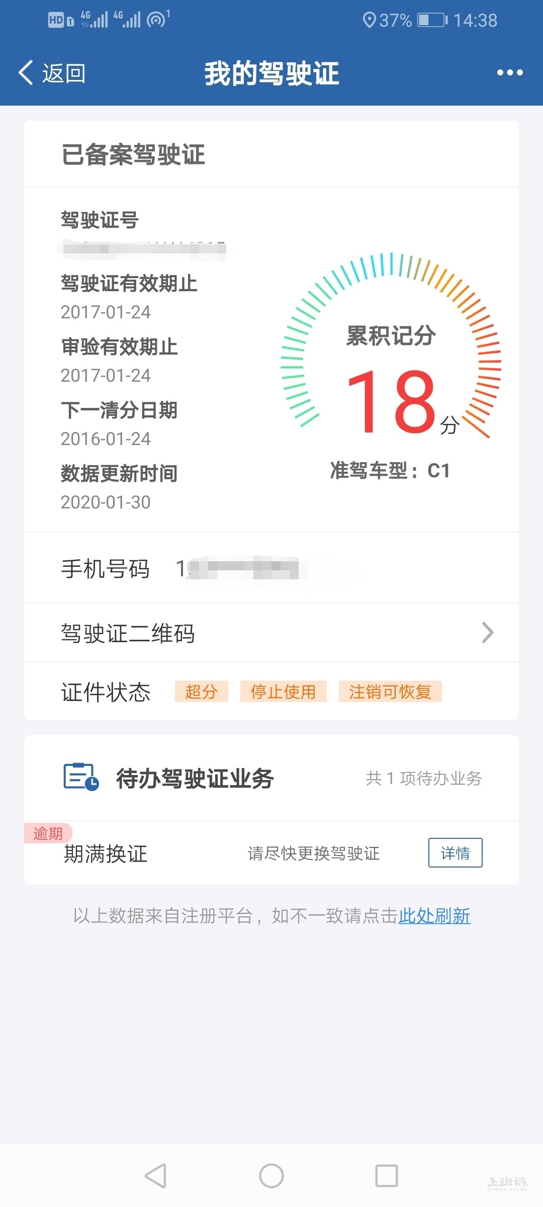 只要你发单里没有一次扣12分的就没事,花点钱去解决,驾照期满过了百度一下有解释的