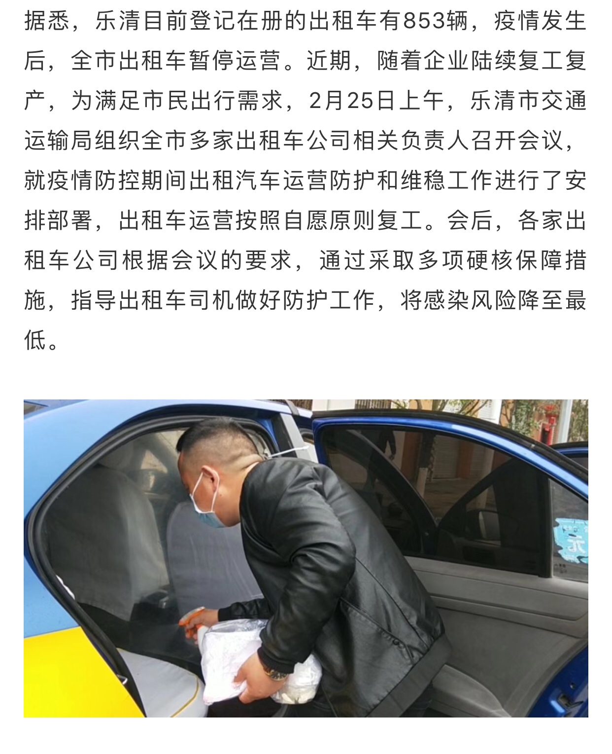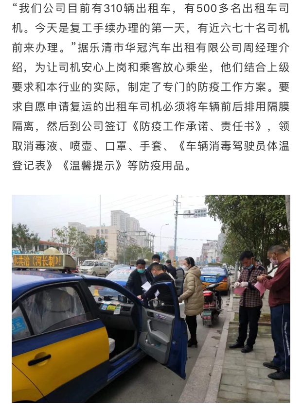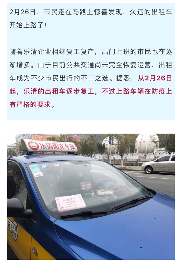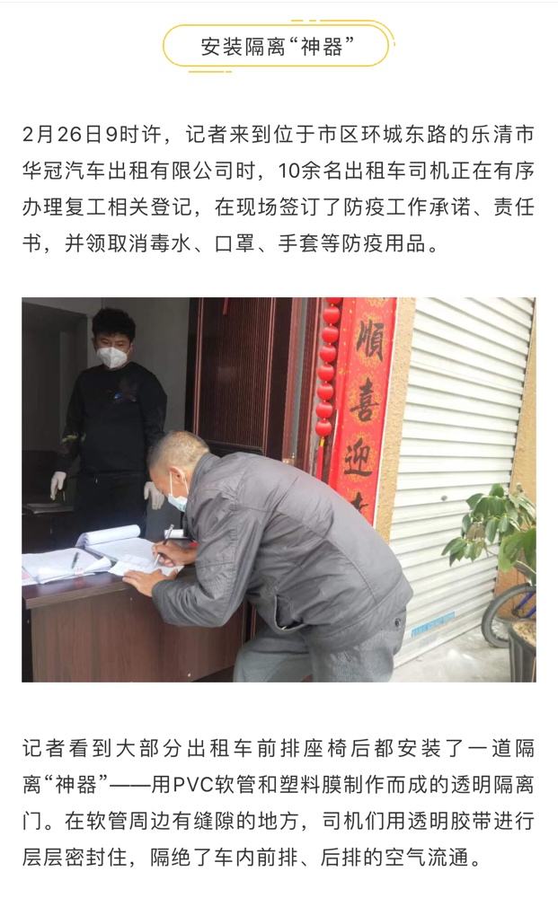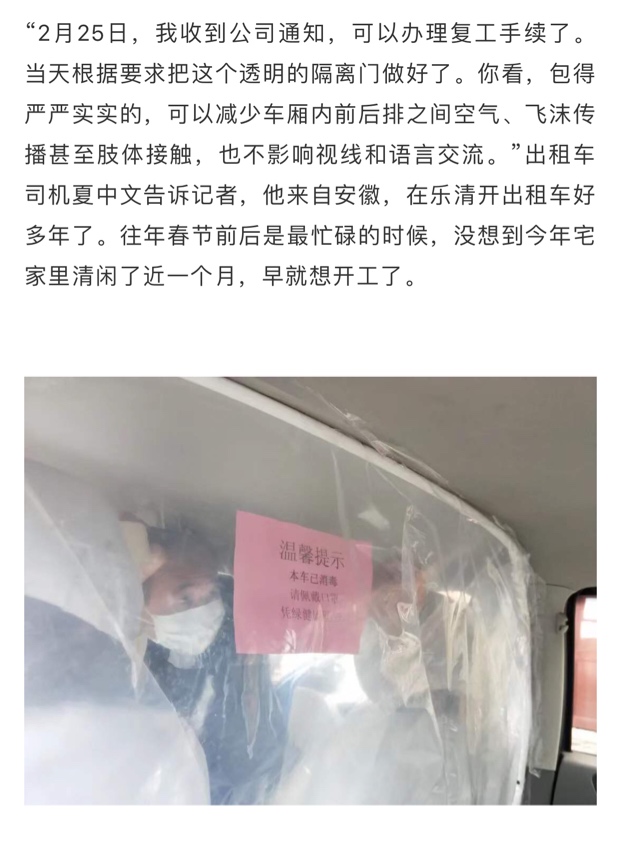 乐清出租车恢复了!车内还装了隔离门……