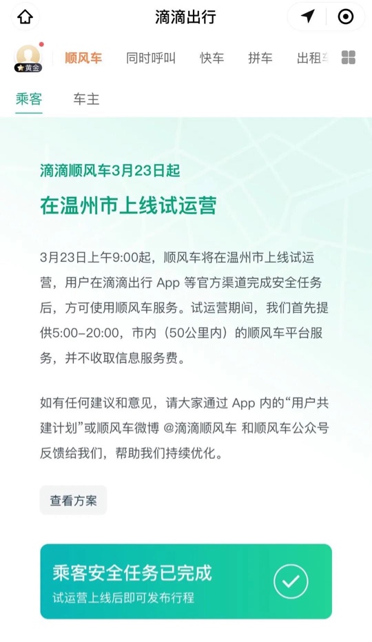 3月23日,滴滴顺风车在乐清重新上线,你会坐吗?