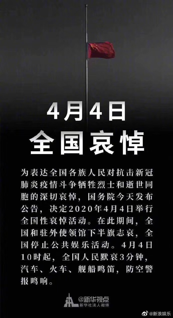 是全国各族人民对抗击新冠肺炎疫情斗争牺牲烈士和逝世同胞的日子,寄托哀思,致敬英雄请大家谨言慎行!