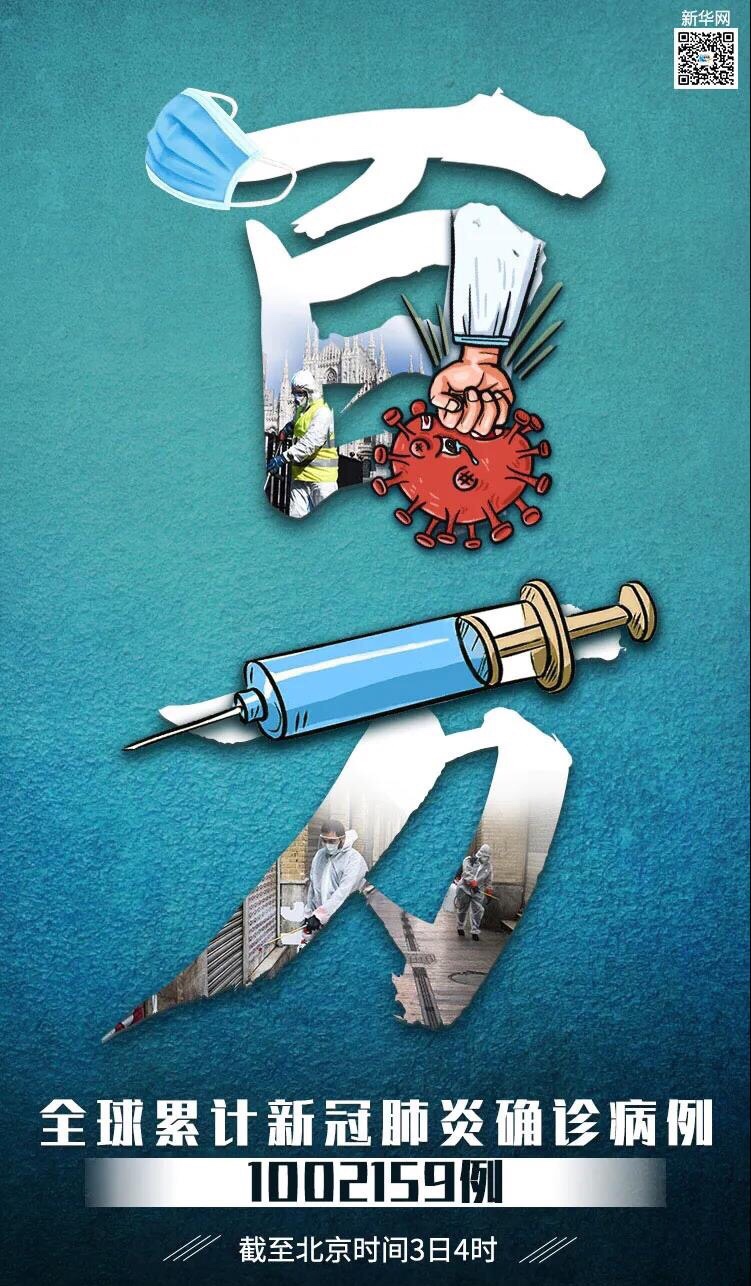 数据显示,截至美国东部时间2日16时(北京时间3日4时),全球新冠肺炎确诊病例达1002159例,死亡病例为51485例。