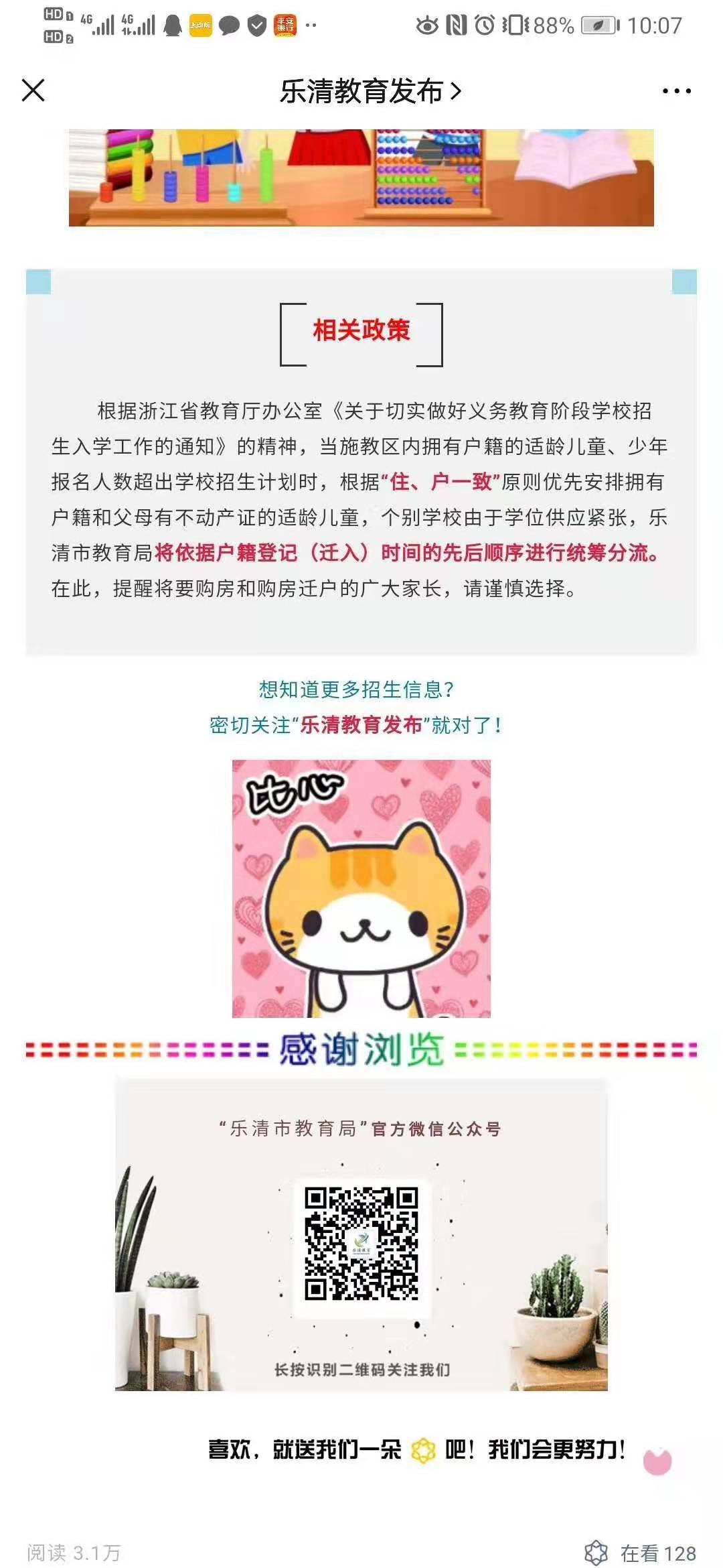 政策年年变,3年后我孩子也要上小学了,希望多建点学校吧,说白了还是公立学校供不应求,原住民占有大半民额,剩下就是要房还要户口?乐清这破房价我不如多弄点去杭州宁波买房入户口呢何必留在这4 5线城市