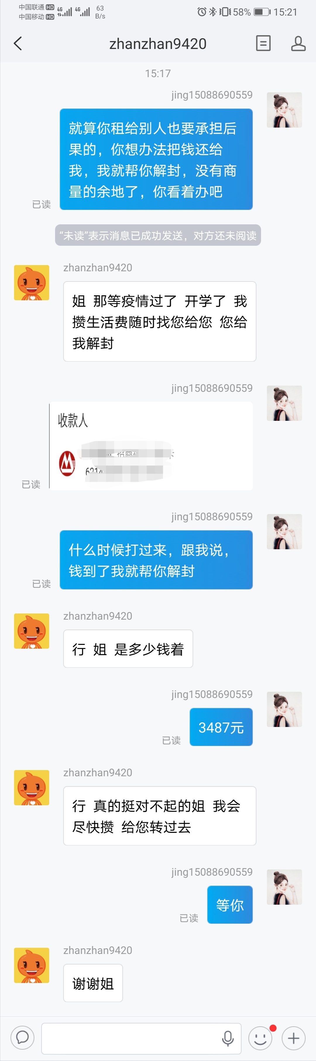 我怎么觉得不像是骗子了。一般和你说了那么半天然后你还是不愿意解封,骗子也不会再说那么多了,可能真是个不懂事的孩子,想减轻家里负担赚点零花钱,没想到被坏人有机可乘了,心可能是好的,就是没想到过背后的人心险恶,