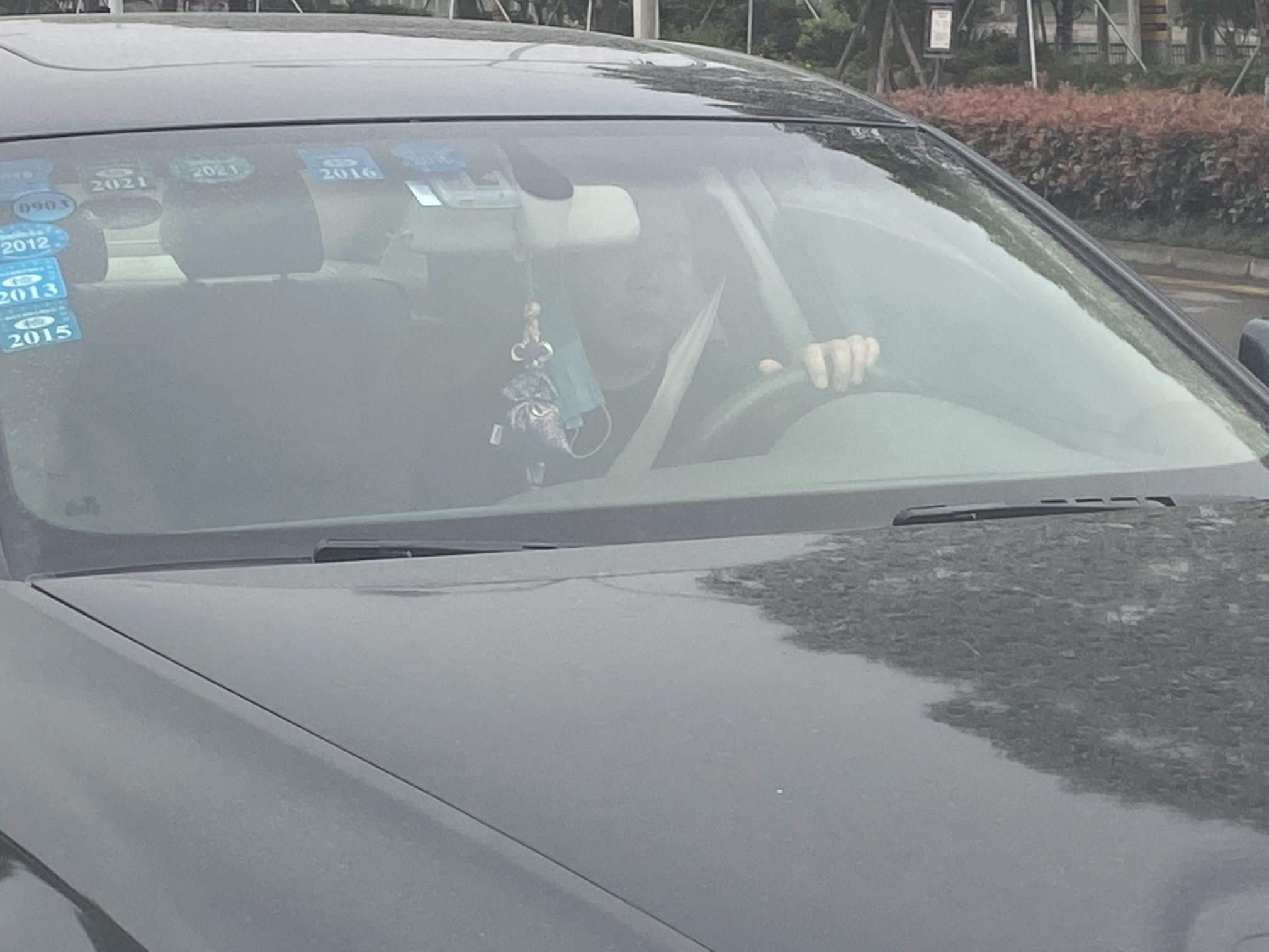 没有啊,堵着我瞪我……然后我就拿手机拍他!他就倒车了……