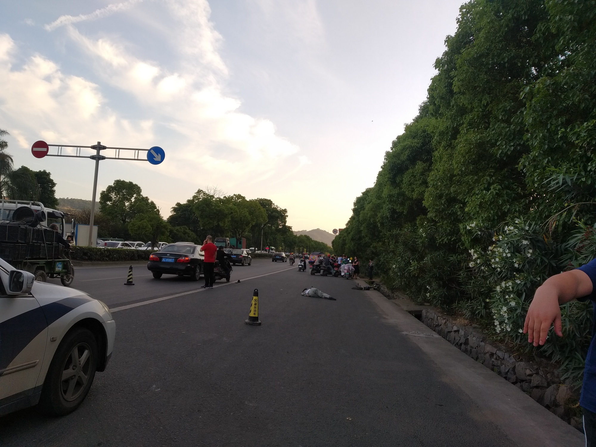 看着像在机动车道上被撞飞到非机动车道上的样子!