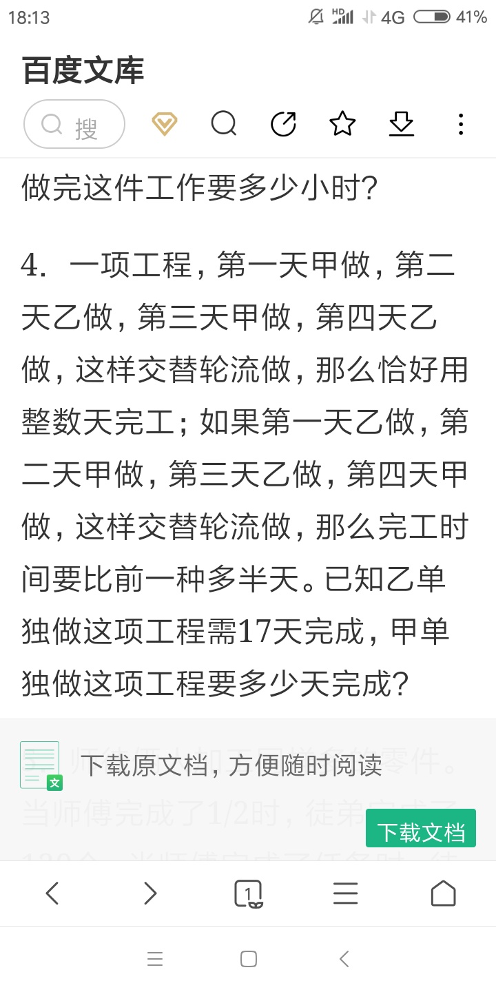 把这项工程总量看做单位“1”,根据题干可知,乙的工作效率是 1/17 ,且甲的工作效率=乙的工作效率+甲的工 ...