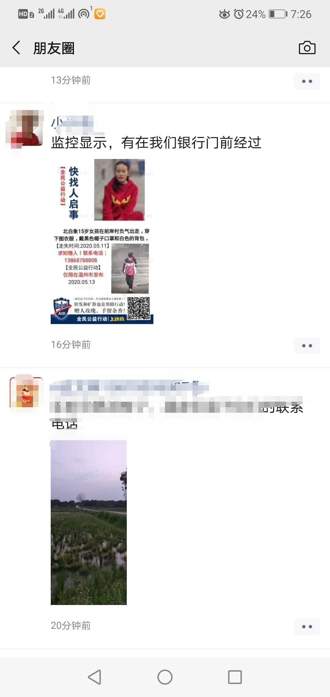 北白象前岸村负气出走女孩