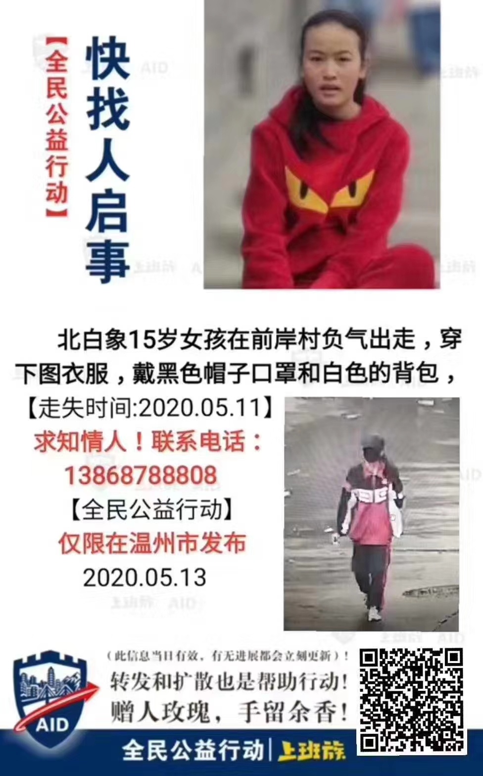 希望女孩早日能找到回家