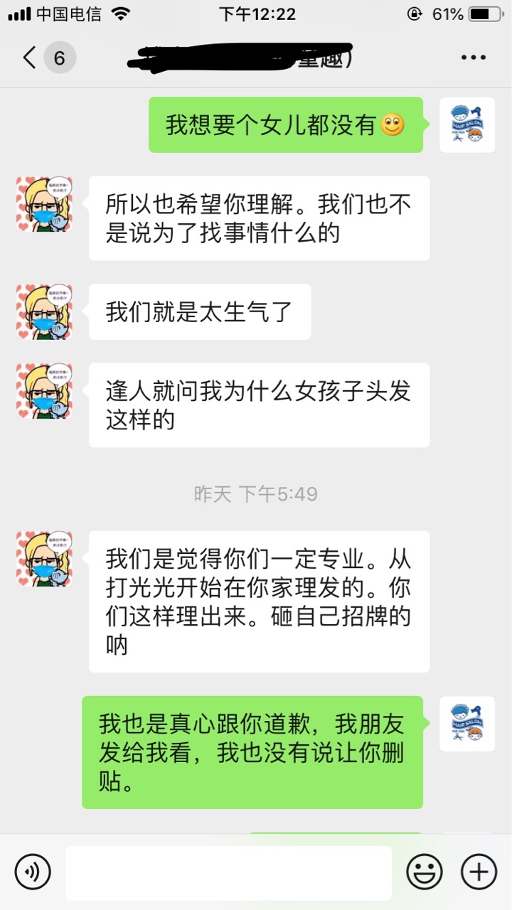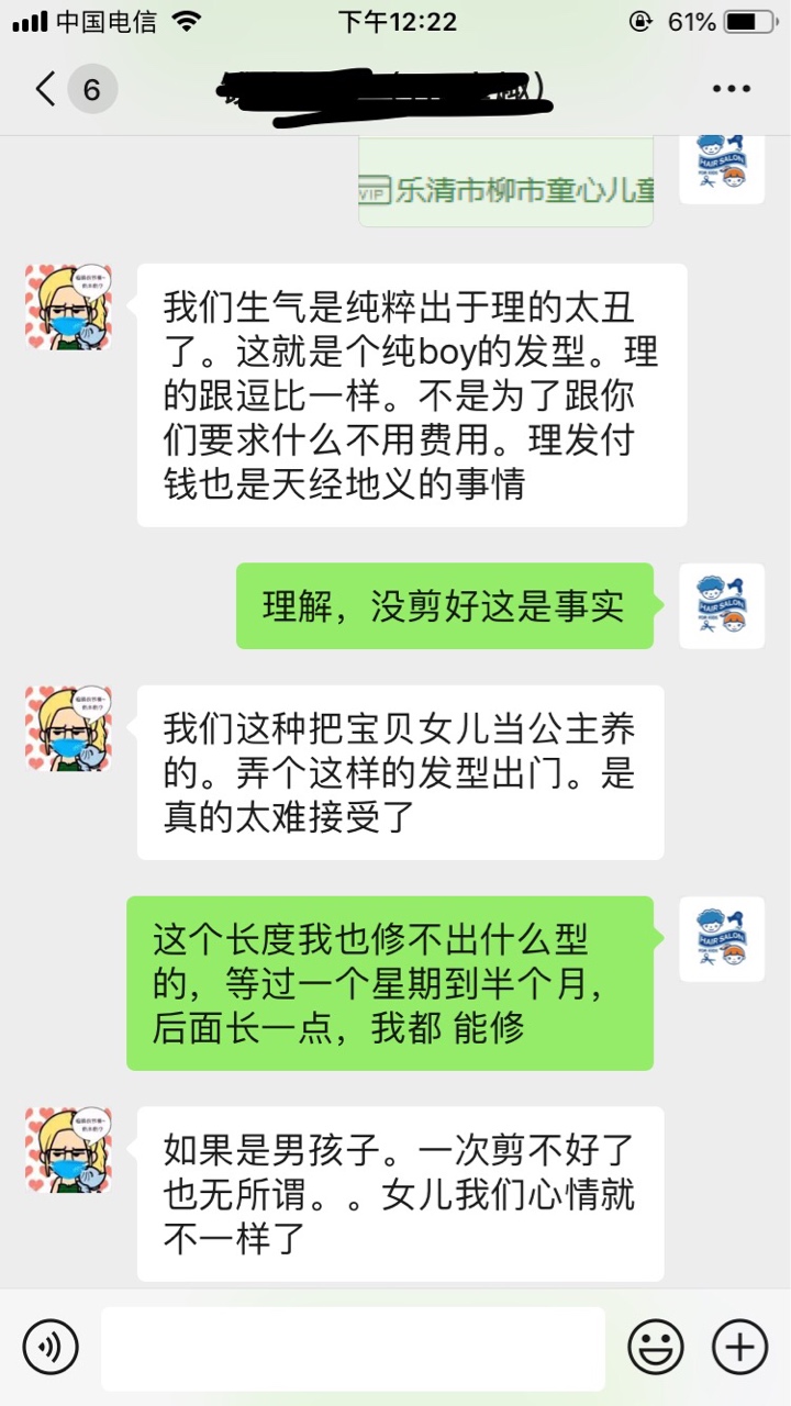 老板你这确实给人家女宝宝剪的太丑了,这哪里还是小公主啊,是我我也要跟你们急