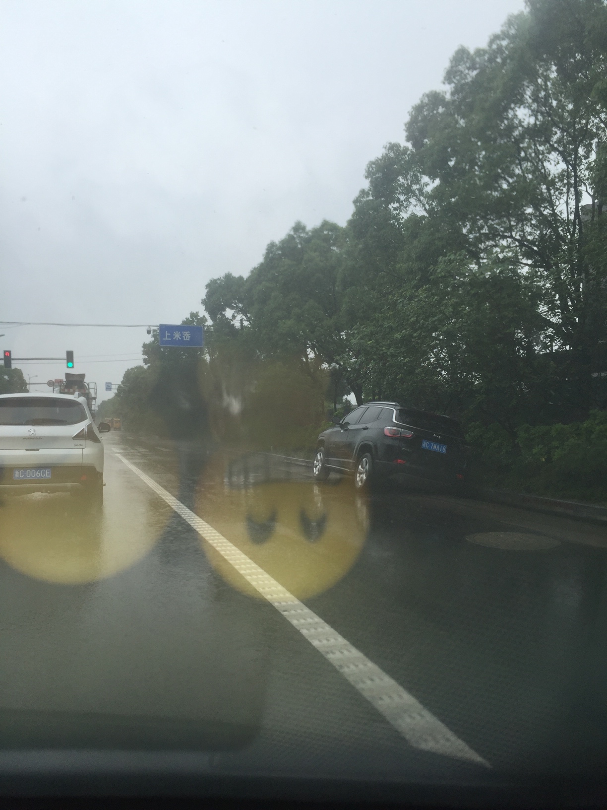 这辆车估计是在非机动车道超车失败,掉到路边水沟了