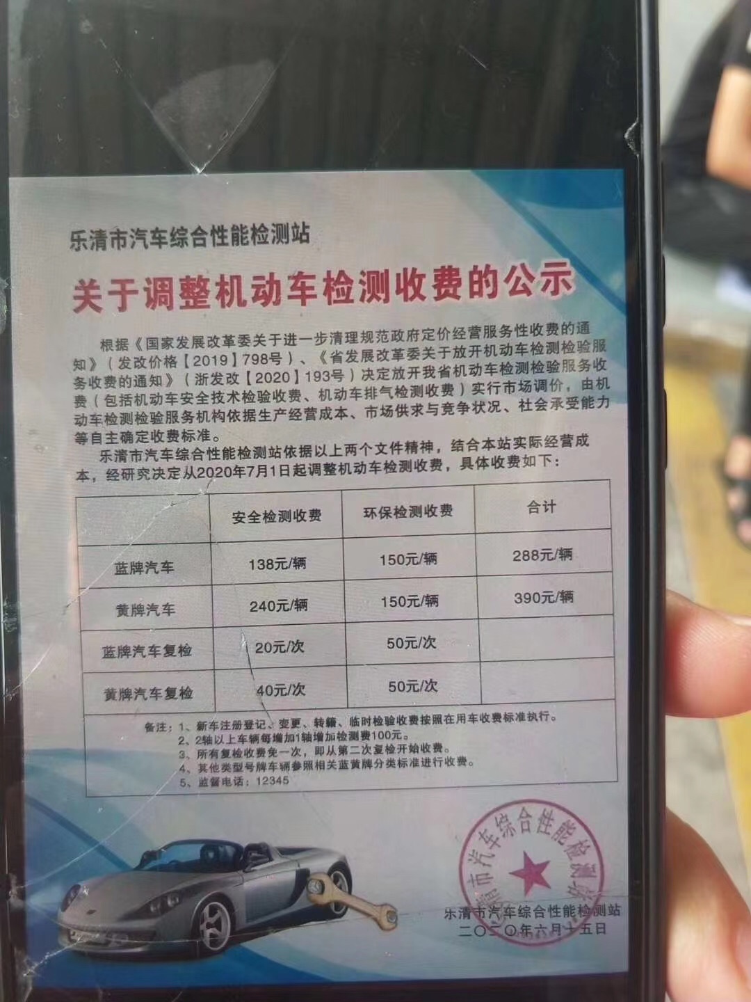 7月1号开始,乐清的小车年审费涨到288/辆!亲们,抓紧时间咯!