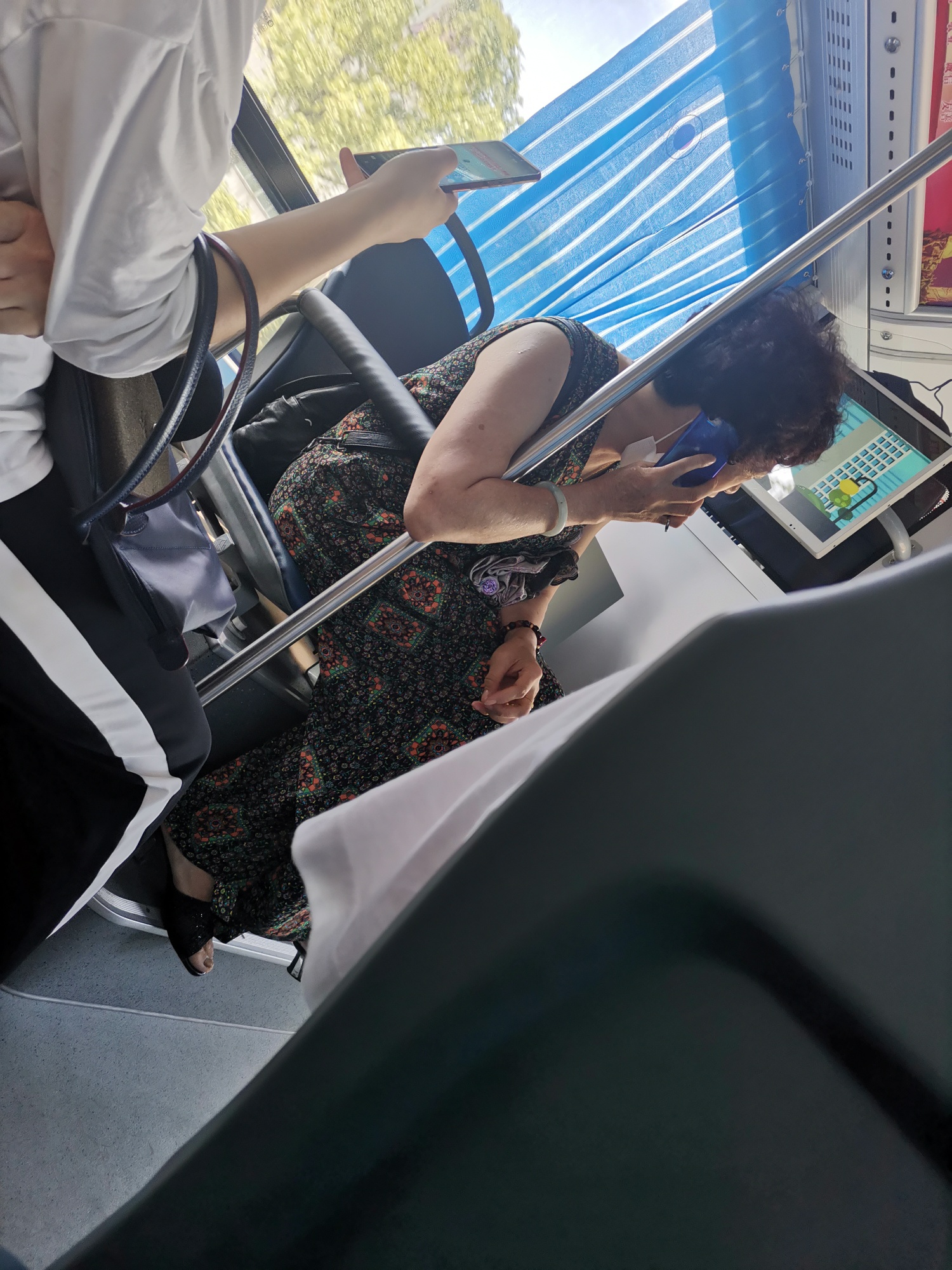 这位大妈,请为了您自己,也为了一车的同路车友,保护自己,不影响他人。