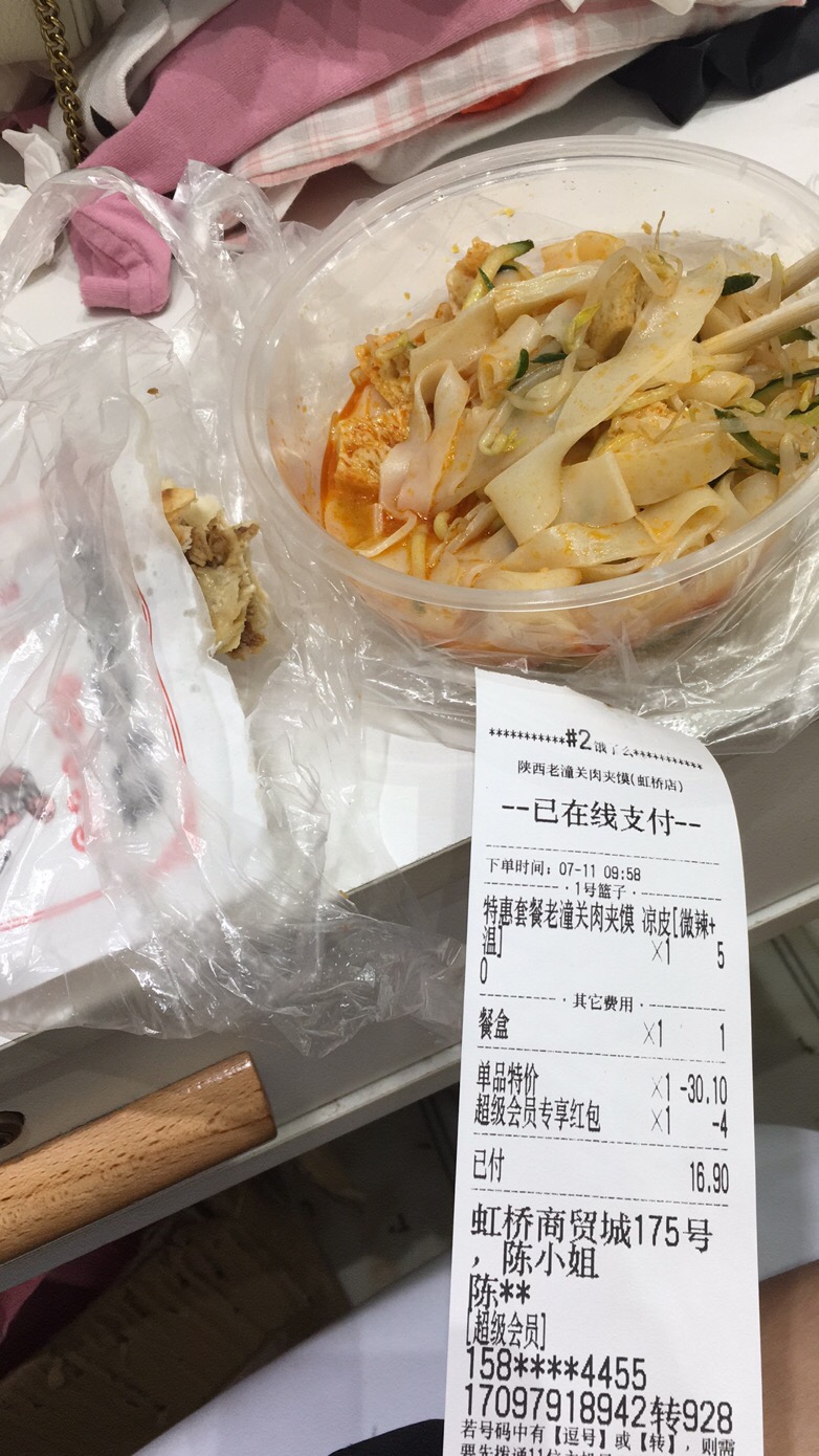 今天早上没吃早饭点了附近的陕西老潼关肉夹馍的肉夹馍和凉皮,然后肉夹馍吃到最后吃出了不明物体,应该是苍蝇,太他妈恶心了,瞬间鸡皮疙瘩起来了,以前外卖吃出个头发什么的还能接受,这个真的无法接受啊
