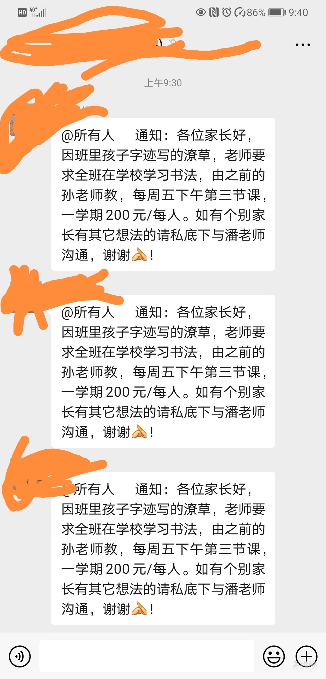 跟楼主这种家长在一个班级里真的是踩到屎了。书法课外面学1500,现在众筹外面请老师来,只要200,还要发帖。