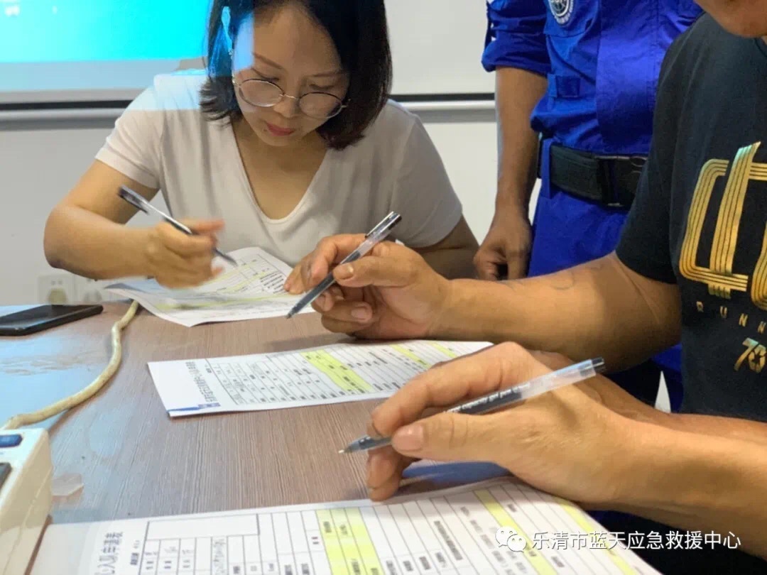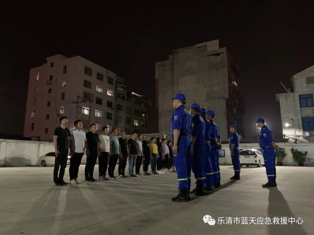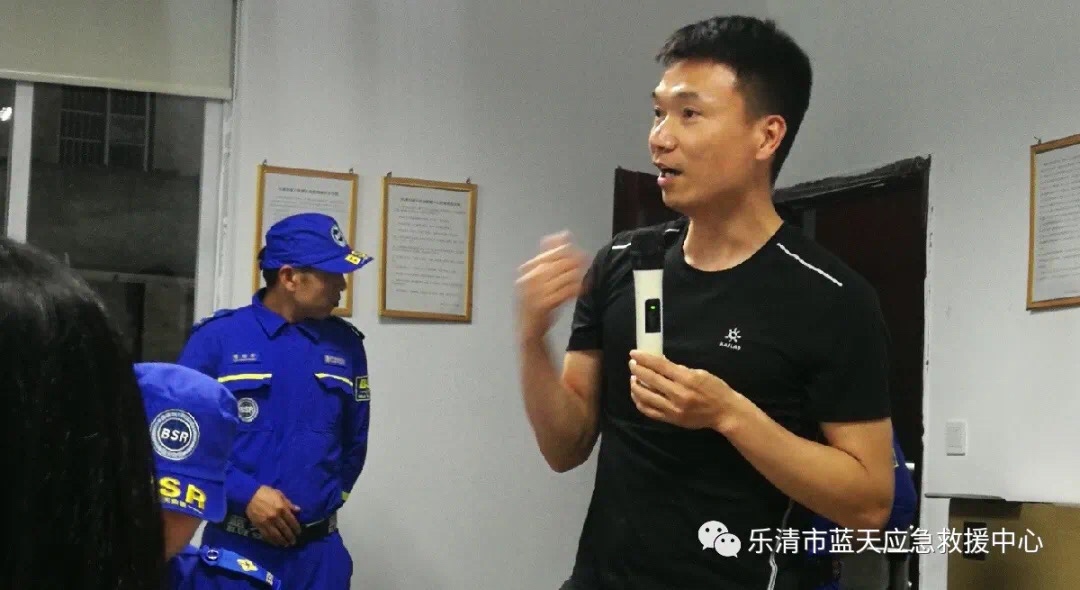 乐清市蓝天救援队队长陈庆伟为新队员上蓝天第一课。乐清市蓝天救援队是一支立足乐清、辐射全省的民间专业化公益救援队伍,救援领域包括城市、水域、山地、地震等自然灾害救援,曾经多次参与主要救援活动,收到社会广泛赞誉。乐清市蓝天救援队目前有120余名正式成员。少说多做、默默奉献、完善自我、善待他人,是乐清市蓝天救援队队训。