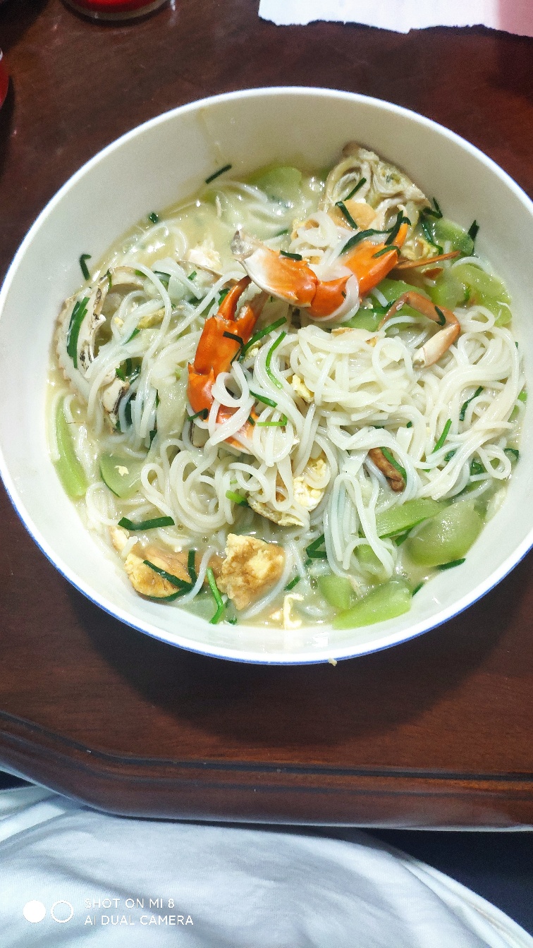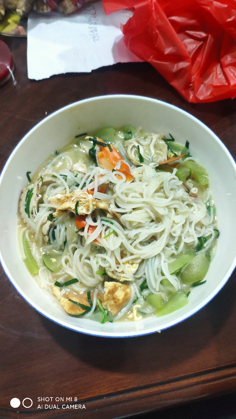 妈妈煮的蝤蠓粉干,看着还行不