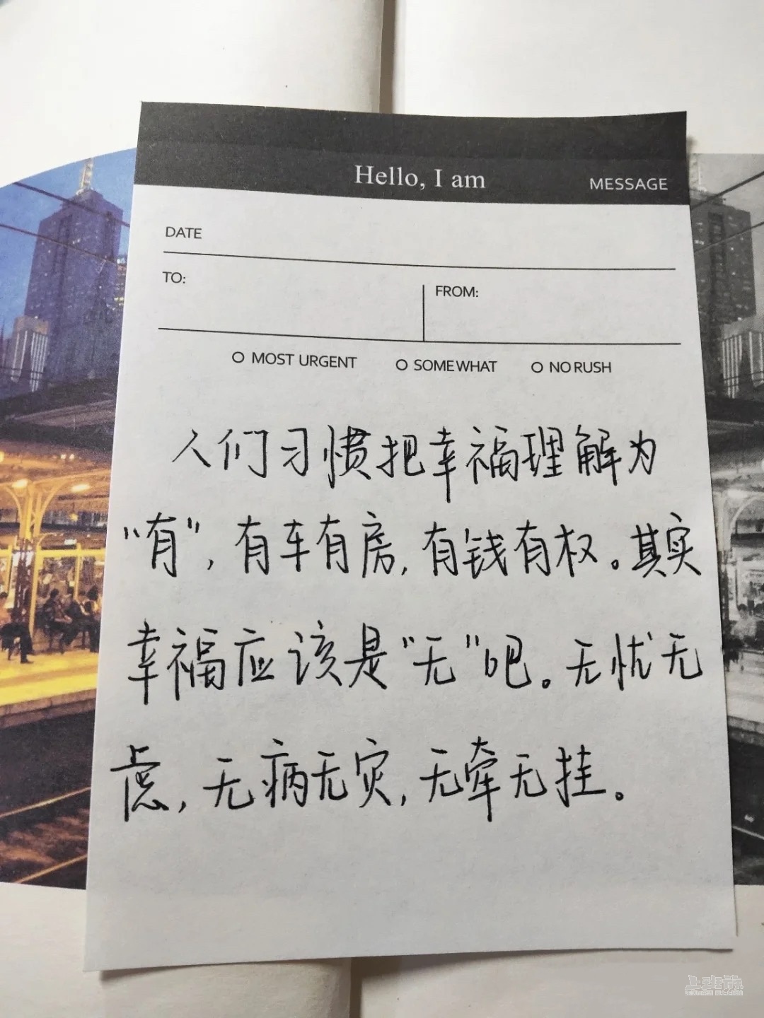 我觉得你们都在谈论物质上的东西!老实说现在谁没房没车?就是人心不足,总想要更好的,在这条道路上,注定不太会幸福,现在更需要的是静下心来,多沟通!其实对于幸福,就是在你需要的时候身边有个关心爱你的人!别拿钱来衡量人!