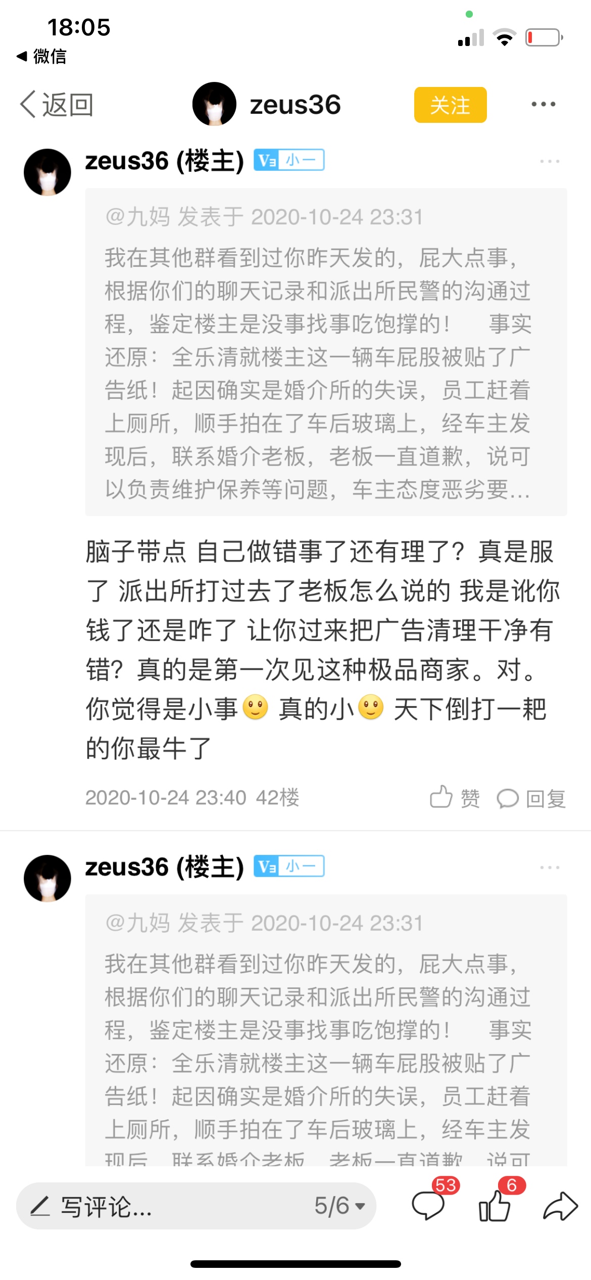看到zeus36发的帖子,然后在下面评论了一下,因持不同意见,惨被楼主辱骂拉黑,篡改聊天记录把我当成商家继续辱骂。