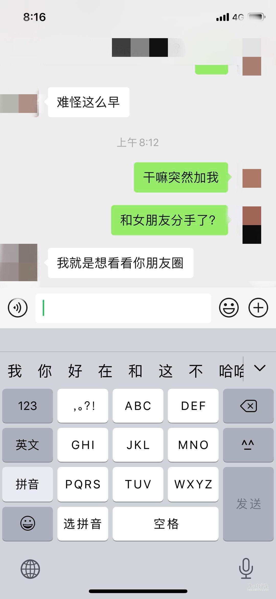 知道是前男友还给加进来 那不是心里还是想和他那啥吗?你自己那个啥为什么还三连问现在的男人